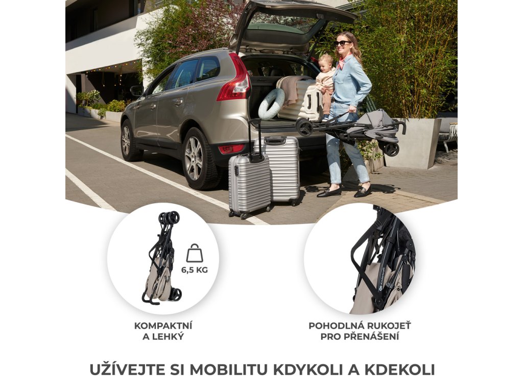 Hledáte lehký kočárek, který můžete složit během několika sekund a vzít si ho s sebou na dovolenou? To je kompaktní sportovní kočárek typu deštník - TIK! Váží pouhých 6,5 kg a je ideální na cesty. Kočárek TIK složíte jako deštník a během chvilky ho uložíte do kufru auta. Bez problémů ho můžete vzít i do vlaku nebo veřejné dopravy.