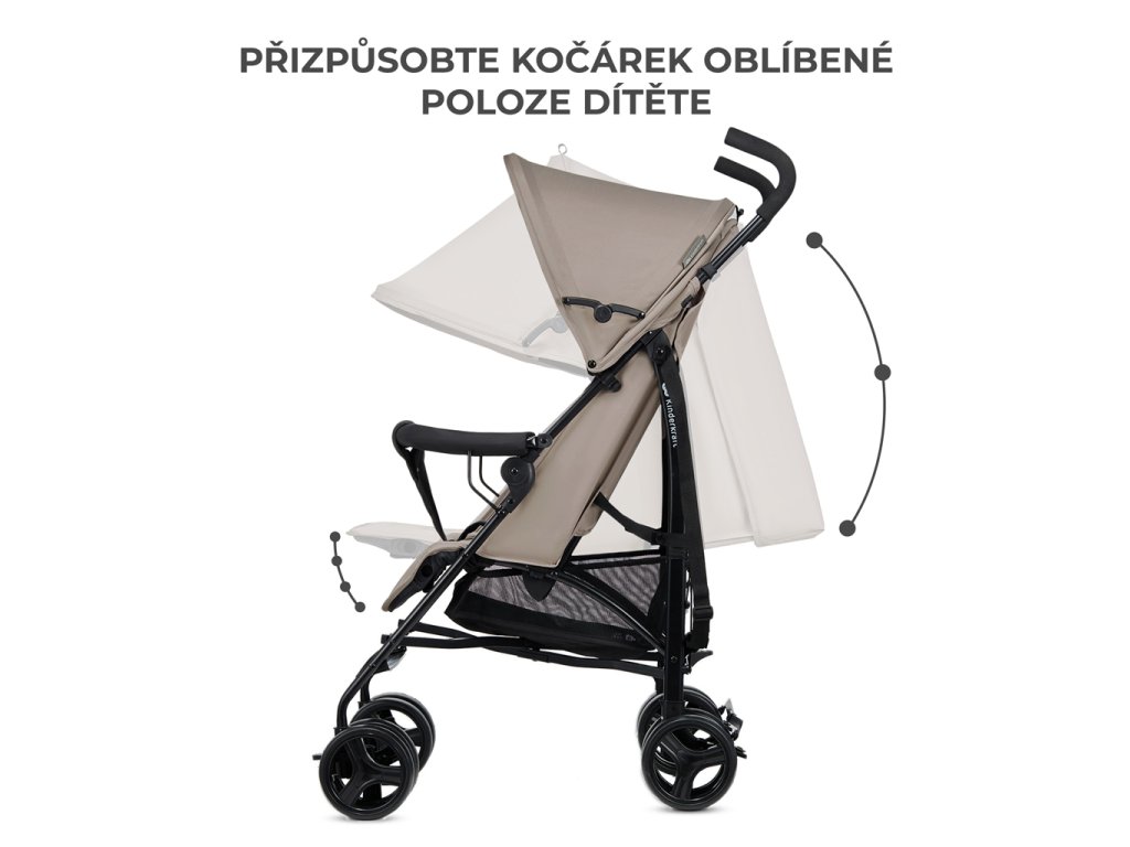 Chce si dítě během procházky zdřímnout? Jednoduše rozložte opěrku rukou do polohy vleže a nastavte opěrku nohou. Vy budete pokračovat v objevování, zatímco vaše děťátko bude odpočívat po dni plném dobrodružství.