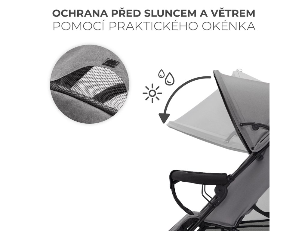 Kromě pohodlného sedadla má TIK také rozkládací stříšku, která dítěti poskytne stín a ochranu před větrem a mrholením. Stříška má okénko pro kontakt s dítětem, takže budete mít vždy přehled o situaci.
