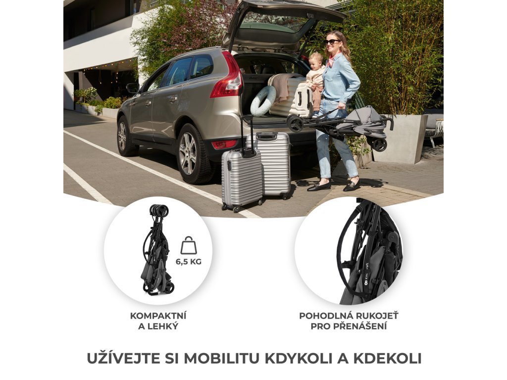 Hledáte lehký kočárek, který můžete složit během několika sekund a vzít si ho s sebou na dovolenou? To je kompaktní sportovní kočárek typu deštník - TIK! Váží pouhých 6,5 kg a je ideální na cesty. Kočárek TIK složíte jako deštník a během chvilky ho uložíte do kufru auta. Bez problémů ho můžete vzít i do vlaku nebo veřejné dopravy.