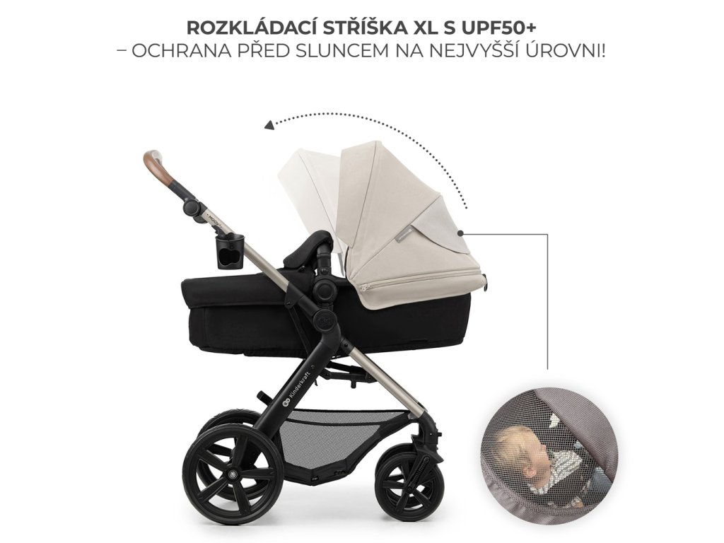 MOOV 2 se postará o děti za všech podmínek. Kočárek má velkou zvětšovací stříšku s filtrem UPF 50+, která chrání vaše dítě před UV zářením a větrem. Poskytne vašemu dítěti tolik potřebný stín během ostrého slunce a ochrání je před mrholením, zatímco vy se schováte uvnitř. Stříška má na zadní straně okénko, takže můžete nahlédnout dovnitř a sledovat, co vaše dítě dělá.