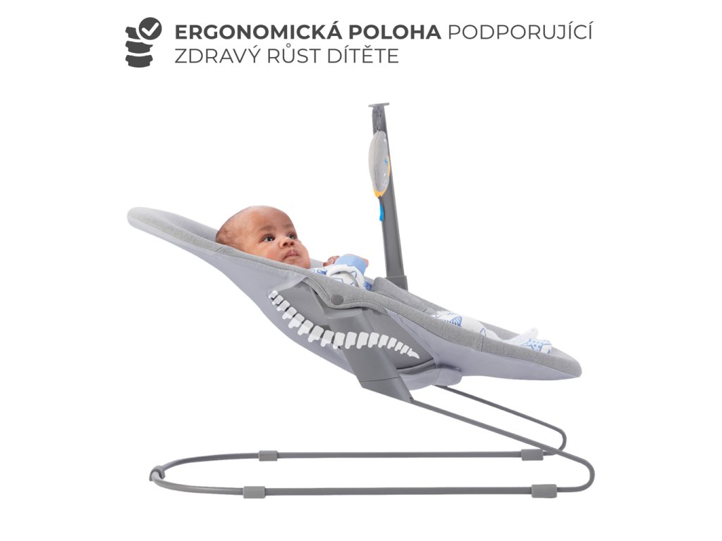 - přizpůsobená sedačka – pohodlná sedačka se širokým opěradlem podporuje správné držení těla dítěte při odpočinku.