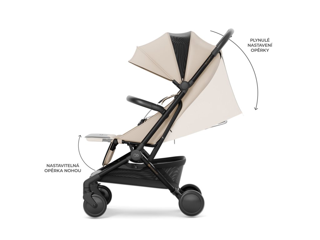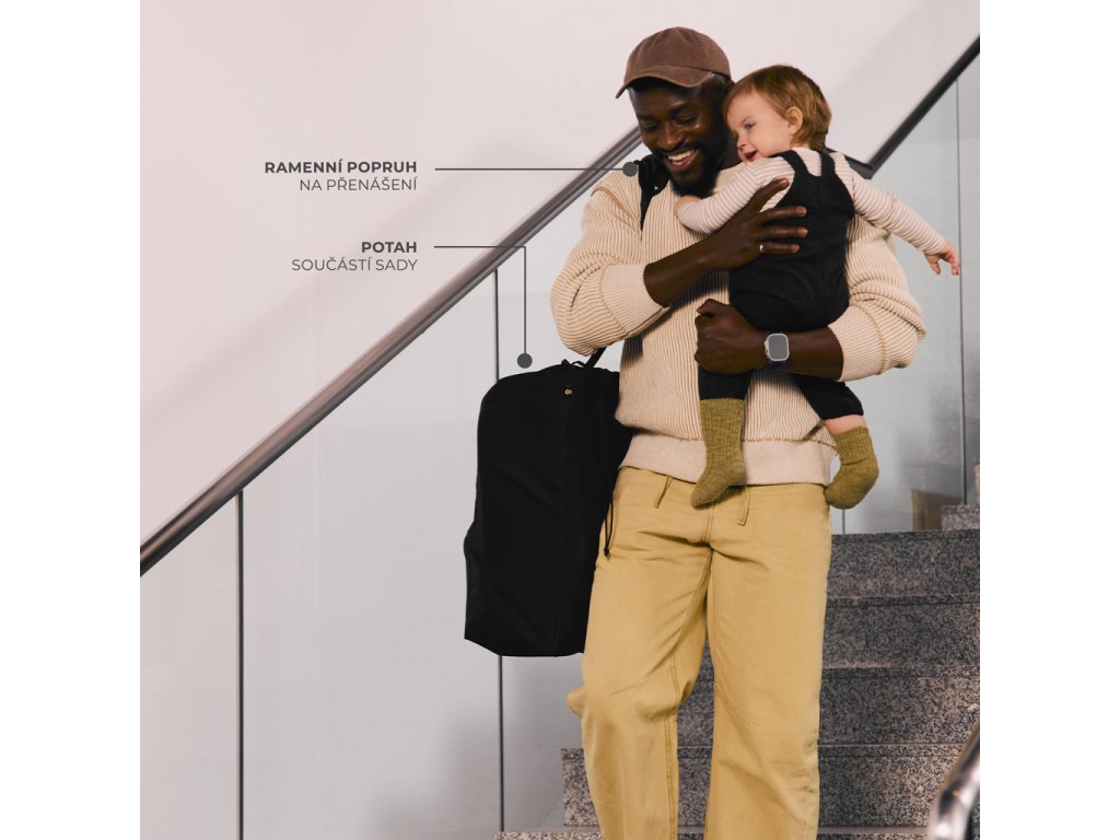 Kočárek je vybaven ochranným krytem, který jej chrání před nečistotami a poškozením při přepravě. Ramenní popruh je natrvalo připevněn ke kočárku a dá se zespodu upevnit, když se nepoužívá, aby nepřekážel při procházce.