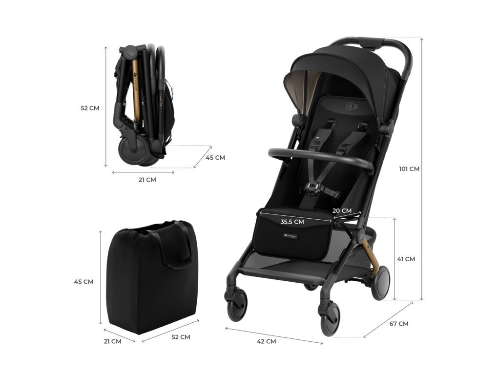 Kočárek je vybaven ochranným krytem, který jej chrání před nečistotami a poškozením při přepravě. Ramenní popruh je natrvalo připevněn ke kočárku a dá se zespodu upevnit, když se nepoužívá, aby nepřekážel při procházce.