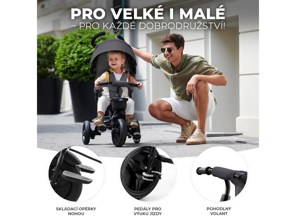 Sedadlo můžete otočit dopředu nebo dozadu. Díky tomu je dětské kolo vhodné pro děti od asi 9 měsíců věku. Bude neocenitelným společníkem na každou procházku a až vaše ratolest vyroste, můžete AVEO snadno proměnit v samostatnou tříkolku.