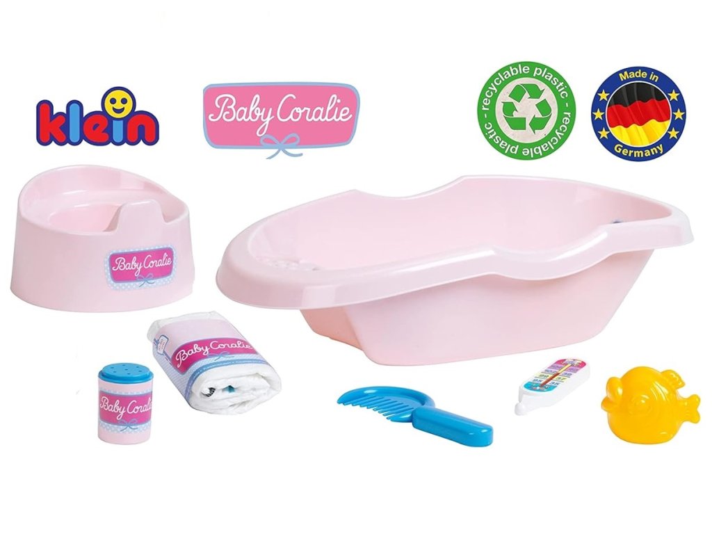 Sada do vany z oblíbené série Baby Coralie obsahuje vše, co hrdé maminky a tatínkové pro panenky potřebují ke koupání a péči o své nejmenší. Mezi doplňky pro panenky patří teploměr pro měření teploty vody a také rybička pro zábavu miminka. Po koupeli následuje nočník, poté se použije pudr, plenka, hřeben a všichni se připravují na spánek. Sada dává dětem pocit, že jsou skutečnými maminkami a tatínky. Hravě si tak procvičují přebírání zodpovědnosti a prostřednictvím hraní rolí se učí o různých aspektech a úkolech matek a tatínků.