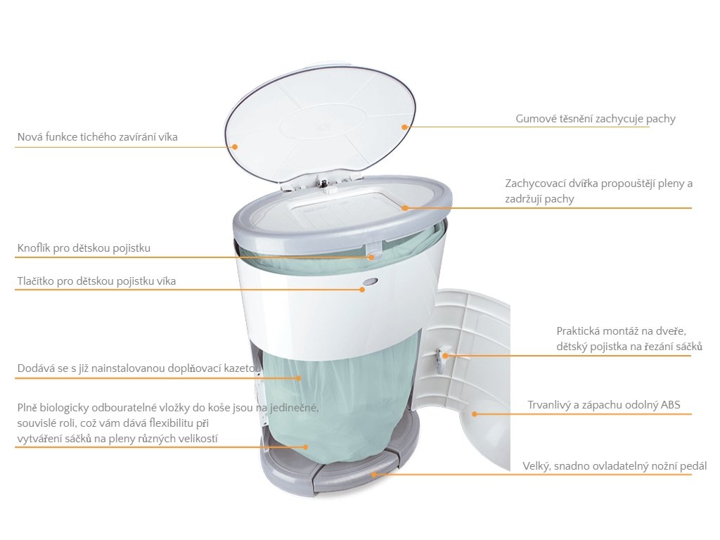 - Kapacita jedné náplně - cca. 20 pytlů (240 plen pro novorozence nebo 110 větších plen).