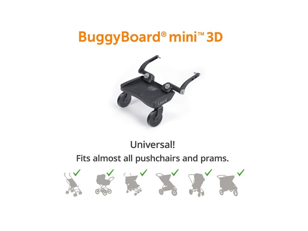 - The BuggyBoard™ Mini je univerzální stupátko pro použití k téměř všem dětským kočárkům.