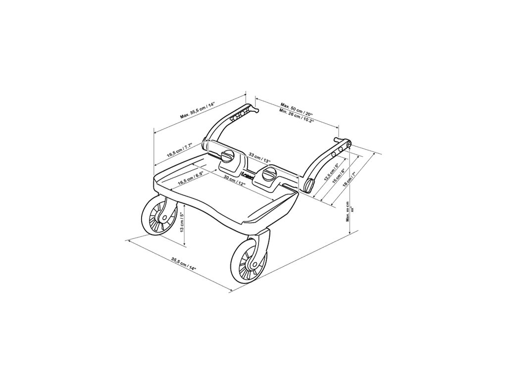 Šířka kočárku: Stupátko lze připevnit ke konstrukci kočárku s rozpětím trubek: 26 - 50cm