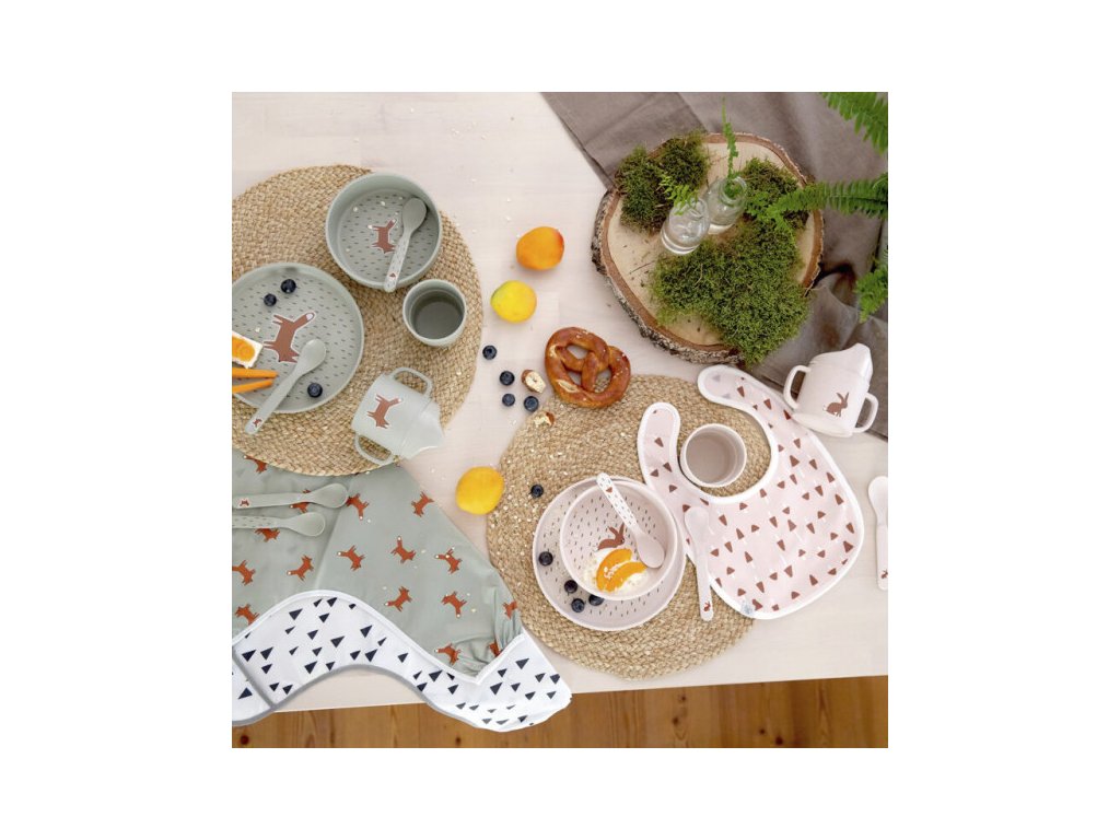 Dětské stolní nádobí v krásném designu, vyrobené za použití trvale udržitelných zdrojů, je určené pro děti od 12 měsíců.