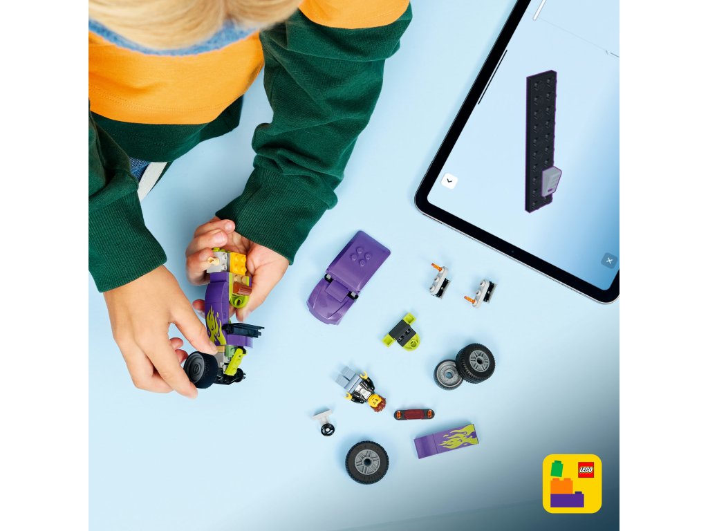 Malí milovníci závodních aut od 5 let můžou vyrazit se na superrychlé závody s autíčkem LEGO® City Hot rod (60485). Tato stavebnice auta nadchne malé stavitele díky propracovaným závodním prvkům, včetně obrovských zadních pneumatik, kokpitu řidičese zvedací střechou a parádnímu fialovému barevnému provedení s neonově zelenými plameny. Stačí přidat minifigurku řidiče a můžete odstartovat superrychlou jízdu! Tato malá stavebnice představuje skvělý dárek k narozeninám nebo pro radost pro kluky i h olky, kteří milují klasická autíčka, stavění a hru na nápadité příběhy. Zkombinujte ji s dalšími stavebnicemi z řady LEGO City (prodávají se samostatně) a zažijte ještě více napínavých závodů. Děti si užijí stavění modelu LEGO Hot rodu s intuitivní aplikací LEGO Builder, která jim umožňuje přibližovat a otáčet model ve 3D a ukládat a sledovat postup stavění. Stavebnice obsahuje 81 dílků.