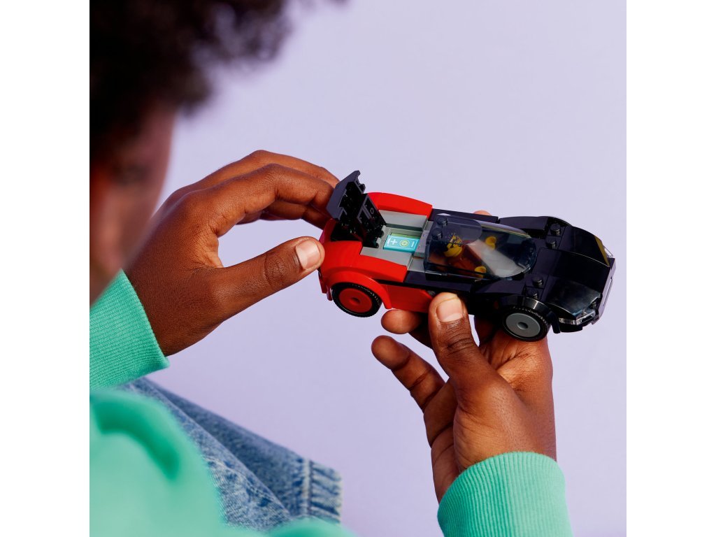 Potěšte malé milovníky elektromobilů stavebnicí LEGO® City Elektrické superauto (60486) pro děti od 5 let. Tato snadno sestavitelná hračka v podobě elektrického sportovního auta je plná realistických detailů pro hraní i vystavení, včetně elegantníaerodynamické karoserie v odvážném červeno-černém barevném provedení, nízkoprofilových gumových pneumatik, zadních světel a tónovaného krytu kokpitu. Děti můžou otevřít zadní dveře, aby se dostaly k baterii, posadit minifigurku řidiče za volant, a odstartovat hodiny hraní a nápaditého vyprávění. Tato malá stavebnice auta představuje skvělý dárek k narozeninám nebo pro radost pro kluky i holky, kteří milují moderní elektrická vozidla a stavění z kostek LEGO. Zkombinujte tuto stavebnici s dalšímiz řady LEGO® City (prodávají se samostatně) a zažijte ještě více akce. Aplikace LEGO Builder dodává dětem jistotu a oporu při stavění. Své modely v ní mohou přibližovat a otáčet ve 3D, a sledovat postup pomocí srozumitelného digitálního návodu. Stavebn ice obsahuje 109 dílků.