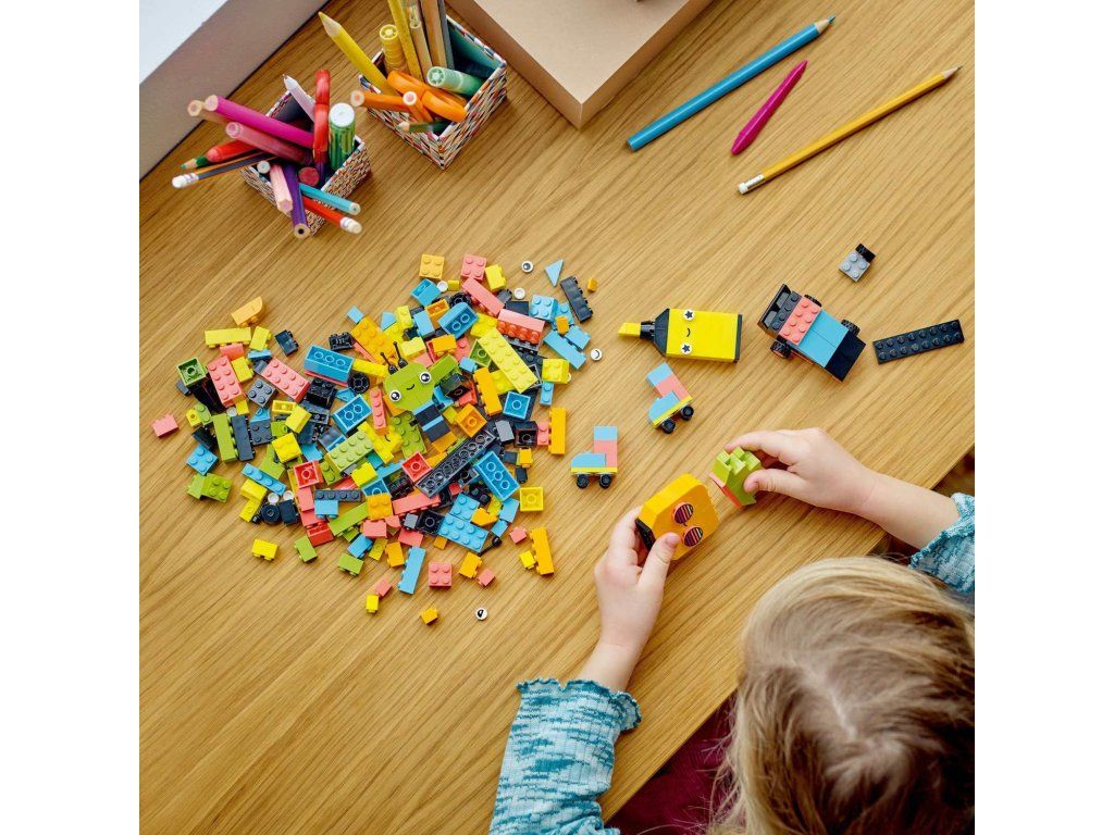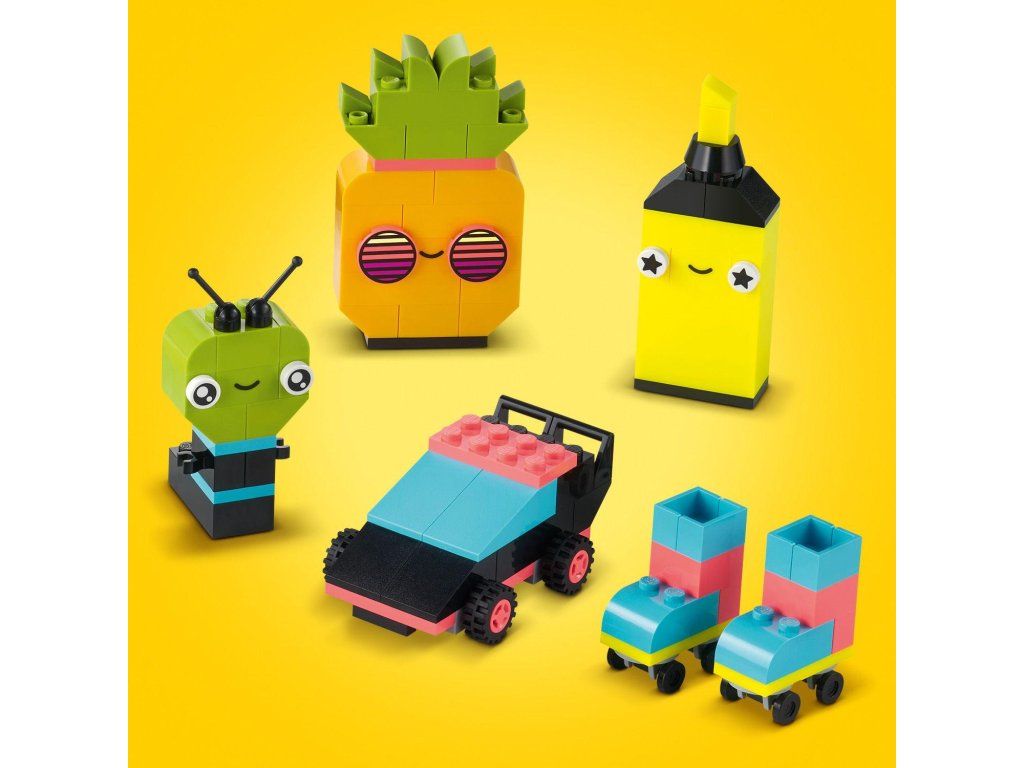 Nastartujte tvůrčí rozvoj dětí s pomocí stavebnice LEGO® Classic Neonová kreativní zábava (11027). Poutavé kostky inspirují mladé stavitele od 5 let, kteří využijí nápady na jednoduché modely nebo si budou stavět podle sebe a dají průchod umělci, který se v nich ukrývá. Výrazné kostky pro kreativní děti Tato všestranná stavebnice obsahuje 333 kostek různých velikostí v neonových barvách. 18 kostek zdobí oči, kterými děti vdechnou svým výtvorům život. Nechybí tištěný návod na sestavení 5 zábavných modelů – ananasu, zvýrazňovače, auta, mimozemšťana a bruslí. Ty poskytnou dětem tvůrčí sebedůvěru, kterou pak využijí k stavění čehokoli, co je jen napadne! Digitální verzi návodu na stavění najdete také v aplikaci LEGO Builder. Vhodné pro celou rodinu Stavebnice z řady LEGO Classic vhodné od 5 let přinášejí inspiraci pro děti a nabízejí příležitost dospělým, jak sdílet vzácné vývojové milníky a zábavu při stavění se svými ratolestmi.