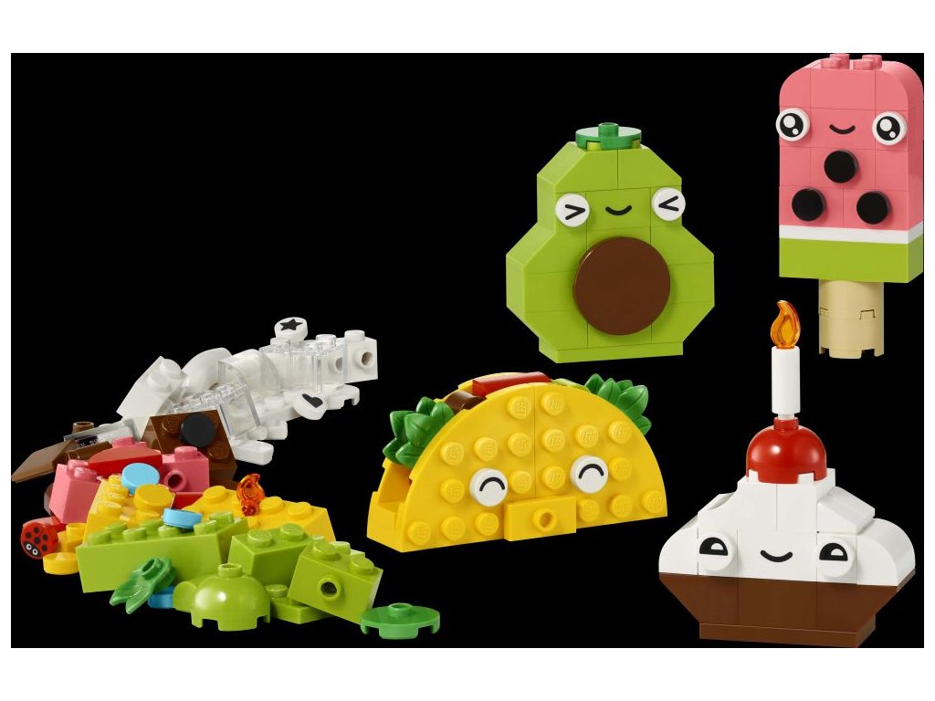 Stavebnice pro děti – LEGO® Classic Kreativní jídlo je nápaditá stavebnice navržená speciálně pro kluky a holky od 4 let Různé kostky a zábavné dílky – Stavebnice obsahuje barevné kostky různých tvarů a speciální dílky, jako jsou oči, ústa a dekorativní prvky Nekonečná kreativita – Děti postaví cupcake, zmrzlinu, avokádo a taco, přestaví je na dort s posypem, bubble tea, hrušku a panini a pak se pustí do tvoření podle vlastní představivosti Podrobný návod – Součástí balení je jednoduchý a intuitivní návod, který dětem pomůže rozvíjet kreativní stavitelské dovednosti Dárek pro děti od 4 let – Tato všestranná stavebnice s rychle sestavitelnými modely představuje kreativní dárek pro děti, které mají rády jídlo a zábavné postavičky Ještě více zábavy – Prohlédněte si celou řadu hraček LEGO® Classic (prodávají se samostatně) a užijte si ještě větší porci kreativní zábavy Rozvoj dovedností pomocí kostek – Hračky LEGO® Classic přináší spoustu nápadů a inspirace a umožňují rodičům sdílet stavitelskou zábavu a vývojové milníky se svými dětmi Stavebnice se 150 dílky – Model cupcaku měří přes 6 cm na výšku, 4 cm na šířku a 1 cm do hloubky, ale děti si modely mohou přizpůsobit tak, aby byly větší nebo menší.