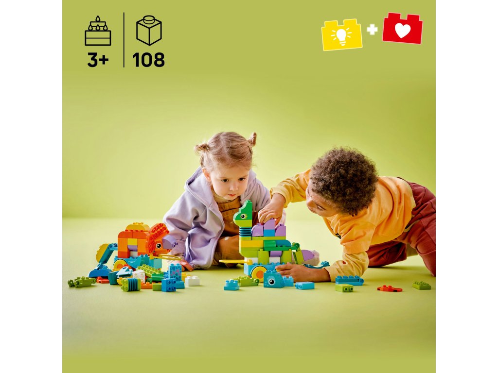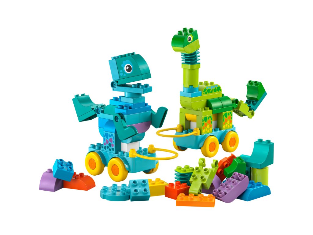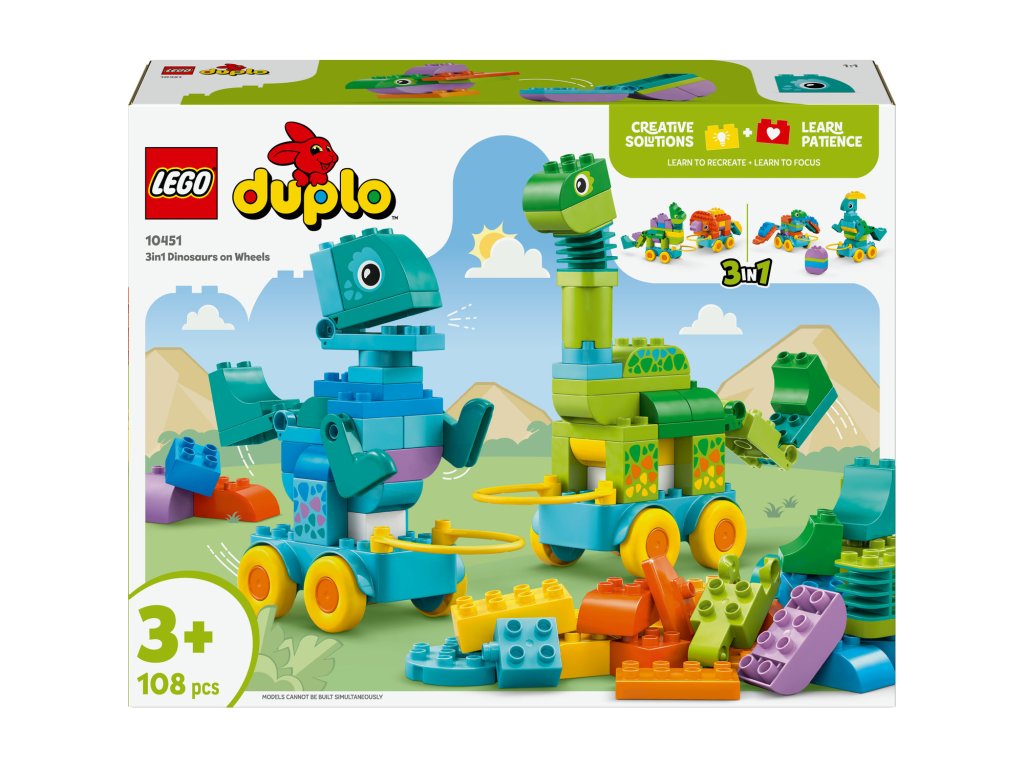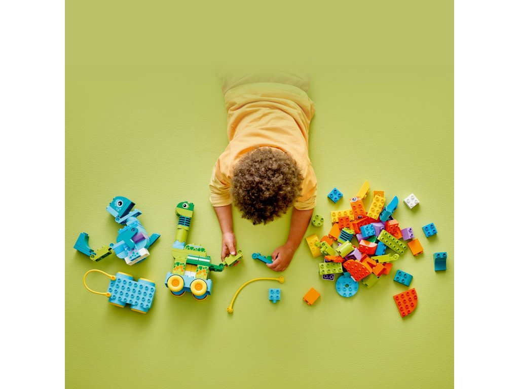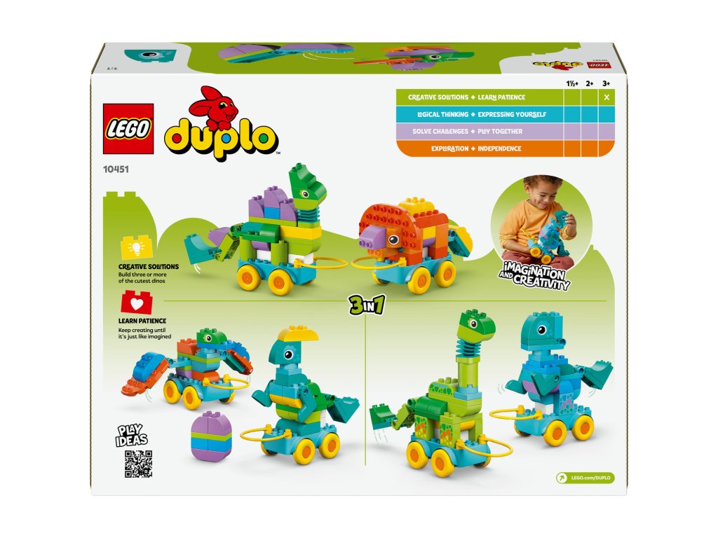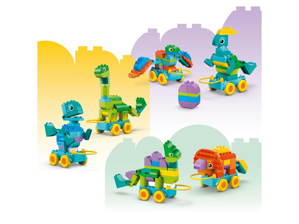• Hračka pro batolata pro hodiny kreativního hraní – Dopřejte dětem vzdělávací hry plné pestrých barev a nekonečné kreativity se stavebnicí LEGO® DUPLO® Město 3 v 1: Dinosauři na kolečkách