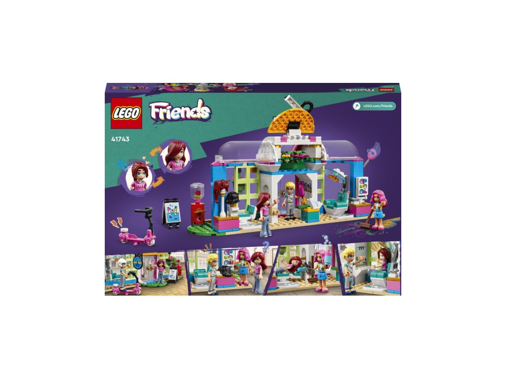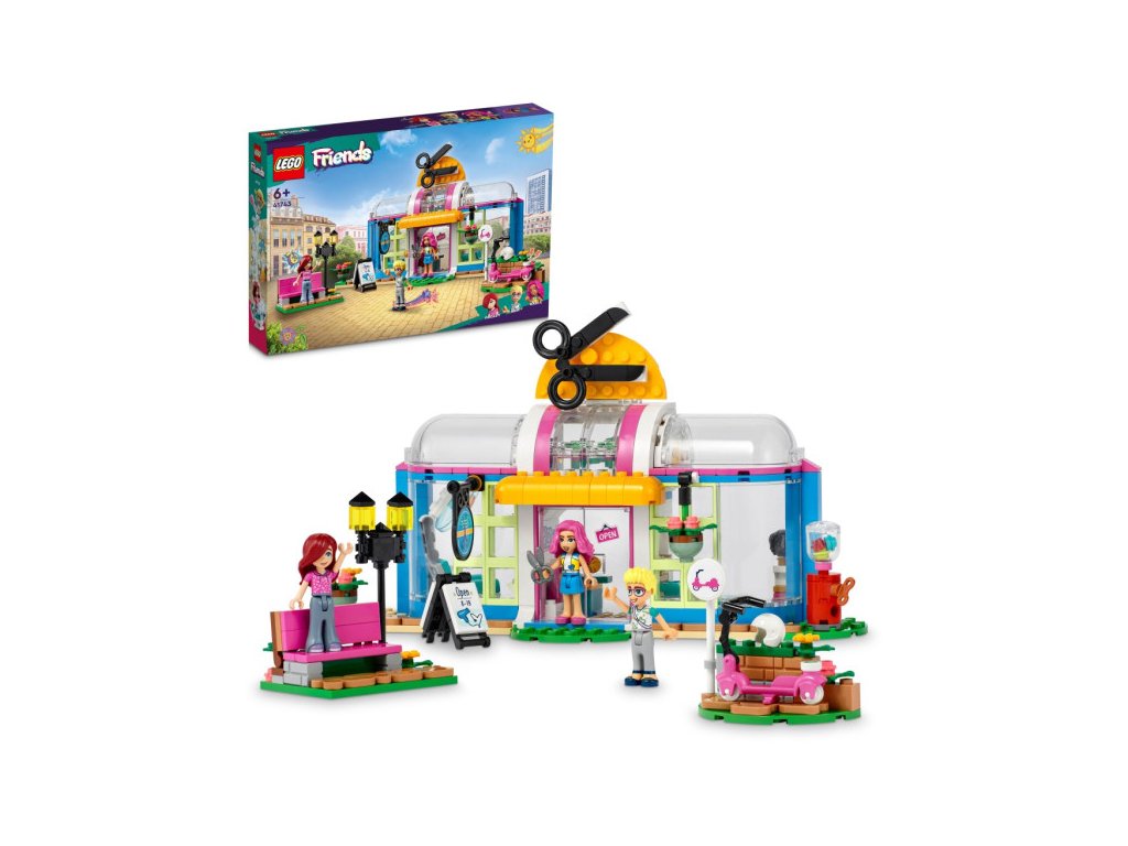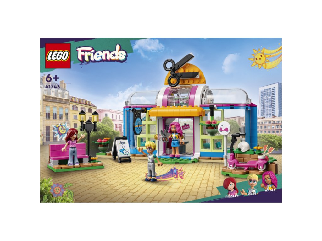 • Model kadeřnictví pro děti od 6 let – Seznamte holky a klukymilující kreativní příběhy se světem stavění a zažívejtedobrodružství s kadeřnictvím od LEGO® Friends (41743) •3 minipanenky – Ve stavebnici najdete postavy LEGO® Friends Paisley, Ollyhoa Nadie, model kadeřnictví s propracovaným interiérem i exteriérem, anavíc Ollyho koloběžku a venkovní lavici • Doplňky kadeřnictví –Stavebnice obsahuje doplňky, včetně rostlin, vlasových produktů, peněz,automatu na žvýkačky, cedule, sušicí helmy a smetáku • Měňte Paislynúčes – Děti mohou vyměňovat dílek vlasů Paisley a výraz obličeje,aby předvedly různé účesy před návštěvou a po návštěvěkadeřnictví • Skvělý dárek pro děti – Tato stavebnice LEGO® Friendspředstavuje zábavný dárek k narozeninám, Vánocům nebo jen tak pro dětive věku od 6 let, které by si rády postavily a hrály na kadeřnictví •Rozměry – Kadeřnictví měří přes 14 cm na výšku, 25 cm na šířkua 9 cm do hloubky • Zábavné stavění – Objevte intuitivní návod nastavění v aplikaci LEGO® Builder, kde děti mohou přibližovat a otáčetsvé modely ve 3D, sledovat postup a ukládat stavebnice. To jim pomůžev rozvoji nových dovedností • Nová generace v městečku Heartlake –V lednu 2023 se svět LEGO® Friends rozšířil o nové postavy a novámísta, aby poskytl ještě více inspirace pro vzrušující dobrodružství• Kvalitní produkt – Už od roku 1958 splňují všechny kostky LEGO®striktní oborové standardy, díky čemuž jsou konzistentní, kompatibilní azaručují zábavné hraní • Bezpečnost nade vše – Kostky a dílkyLEGO® Friends pouštíme na zem, zahříváme, drtíme, kroutíme aanalyzujeme, abychom zajistili, že splňují striktní globálníbezpečnostní standardy