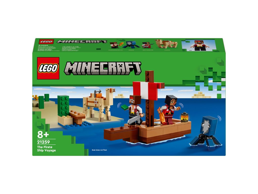 Plavba na pirátské lodi (21259) je dobrodružná stavebnice z řady LEGO® Minecraft®. Stavitelé si s ní mohou hrát samostatně nebo ji zkombinovat s dalšími stavebnicemi (prodávají se samostatně) pro ještě zábavnější zážitek ze hry. Tato všestranná stavebnice pirátské lodi potěší každého fanoušky Minecraftu od 8 let a děti, které mají rády lodě a stavění.