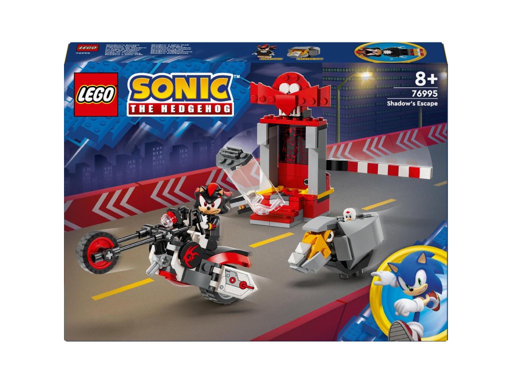 Se zábavnou stavebnicí Shadow the Hedgehog a jeho útěk (76995) z řady LEGO® Sonic the Hedgehog™ si děti od 8 let užijí hodiny akčního hraní. Stejně jako postavy z oblíbené videohry se i děti mohou těšit na úžasná dobrodružství. Vychutnají si stavění modelu i Shadowův úprk ze stázové komory v laboratoři. Hrdina usedne na motorku, projede kolem padající barikády, zničí Badnika RhinoBota – a tak pustí na svobodu Cluckyho – a dá se na útěk. Stavebnice je nabitá herními možnostmi, které podněcují kvyprávění příběhů. Děti mohou vymyslet nespočet způsobů, jakými Shadow přemůže RhinoBota, než se na své motorce vydá na útěk. V řadě LEGO Sonic the Hedgehog™ se snoubí rychlé akční hraní s kreativním stavěním. Děti a fandové Modré šmouhy si vychutnají tvorbu inspirativních scén se 3 oblíbenými akčními figurkami ze slavné hry. Děti se mohou těšit na nenáročné a intuitivní stavitelské dobrodružství s aplikací LEGO Builder. V ní si lze přibližovat a otáčet modely ve 3D, ukládat stavebnice a sledovat postup.