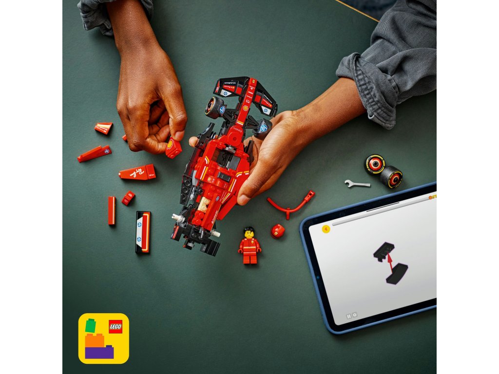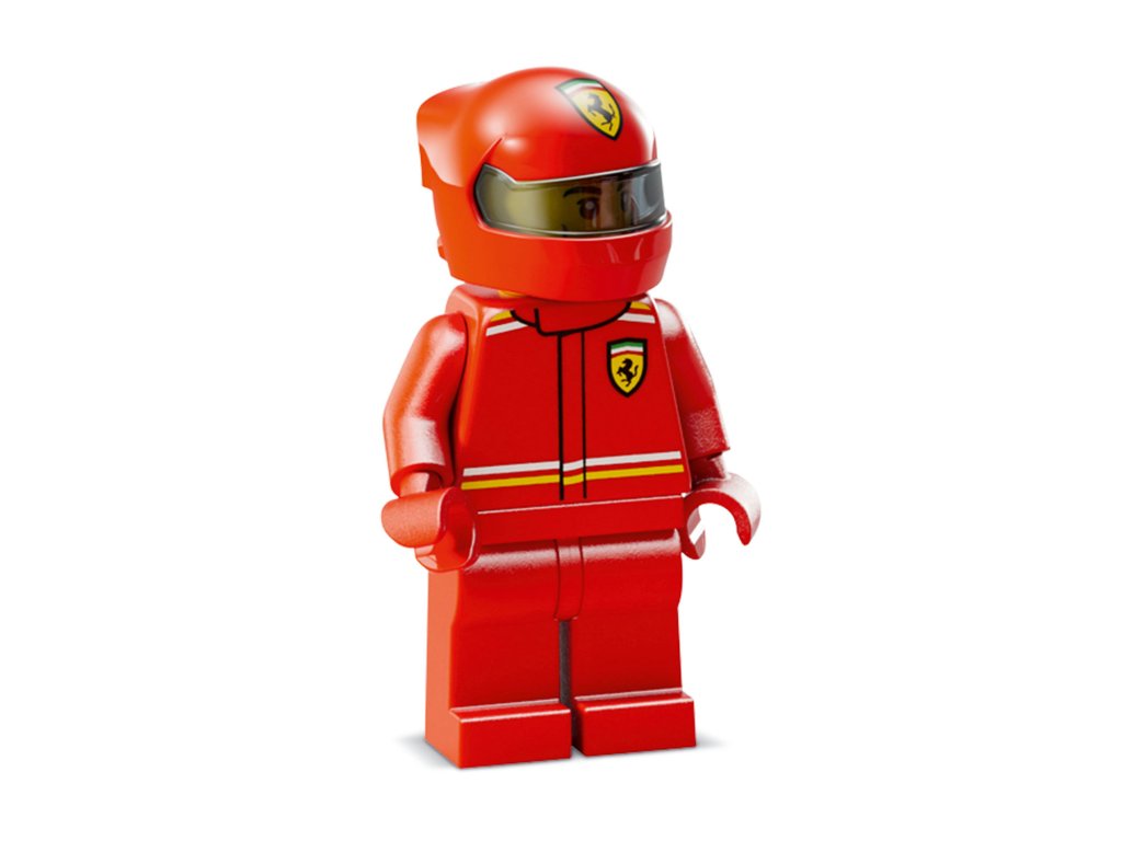 1 minifigurka – Tato stavebnice vozidla obsahuje minifigurku řidiče ve speciálním outfitu Ferrari s okřídlenou helmou, kterou děti usadí do kokpitu a vydají se s ní na napínavé závody