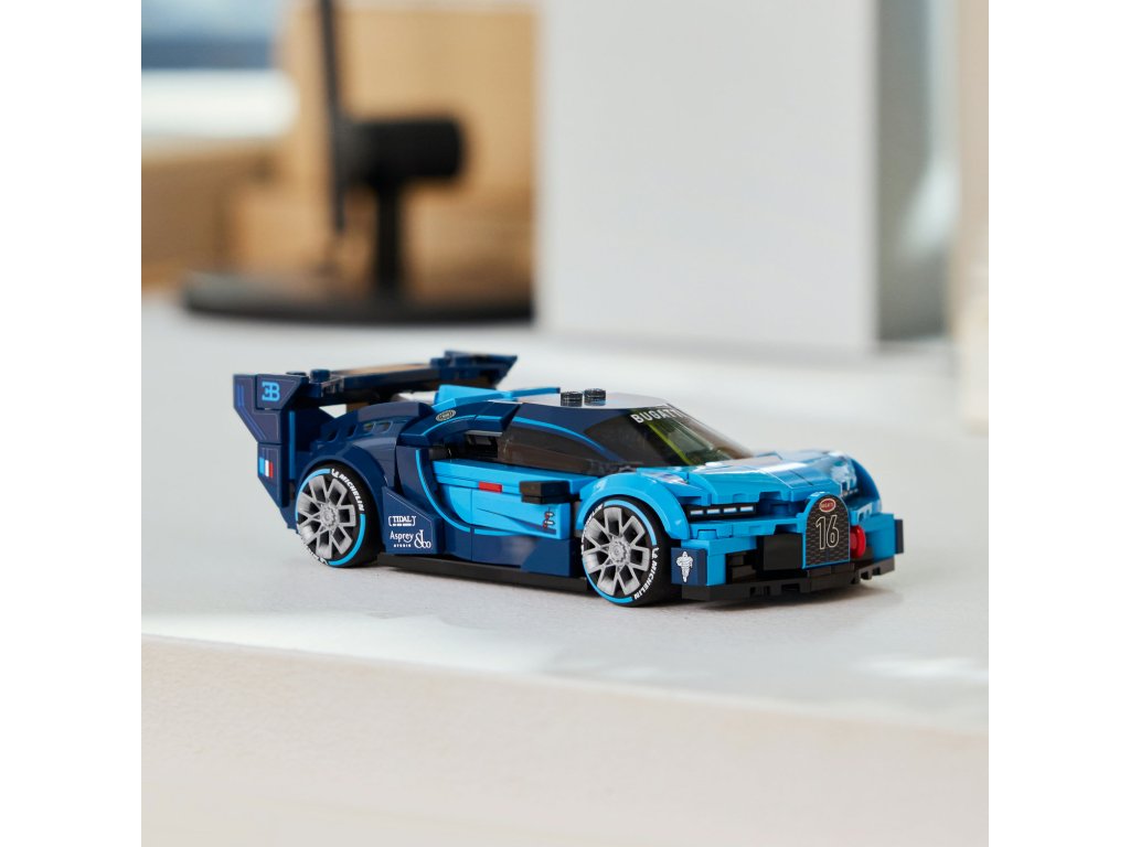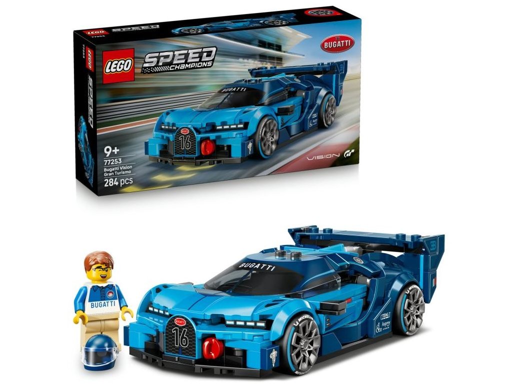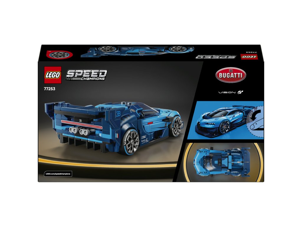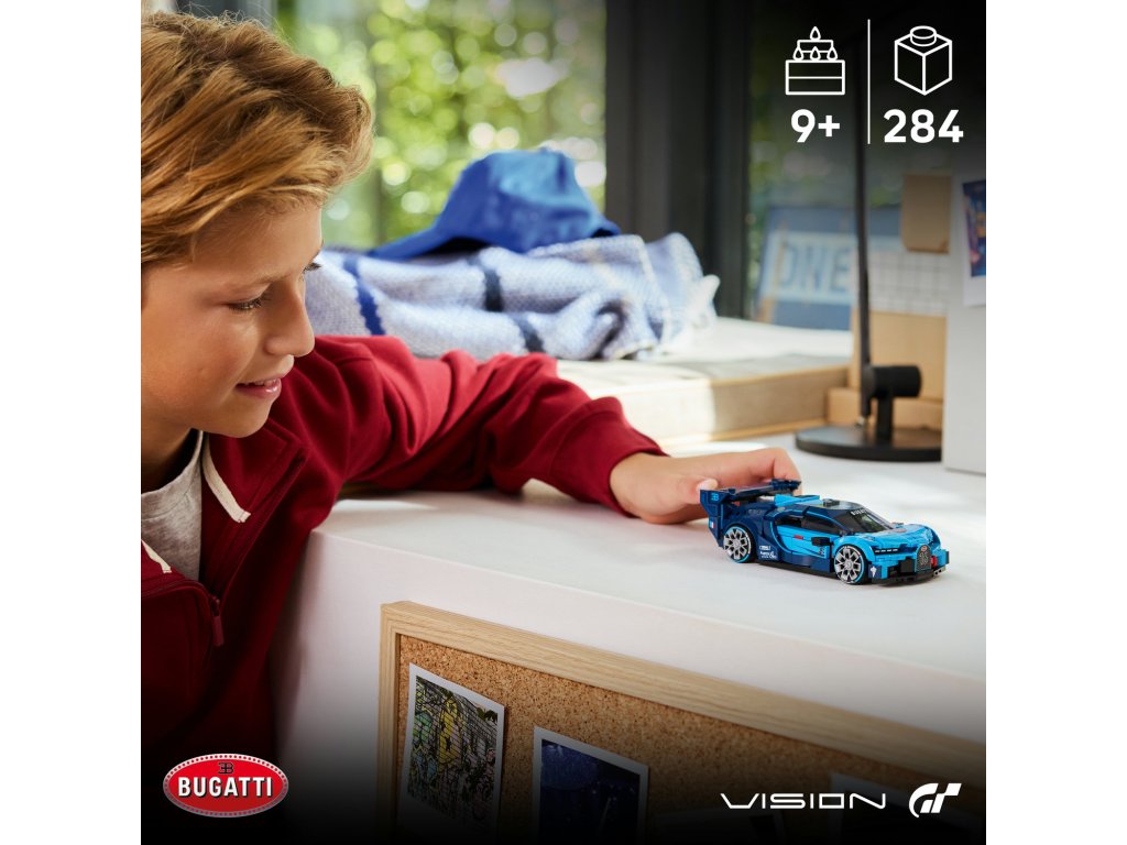 Tento luxusní model Bugatti zcela poprvé umožňuje fanouškům automobilů a série videoher Gran Turismo zblízka prozkoumat eleganci a výkon tohoto technického zázraku. Model vozu Bugatti se pyšní detaily inspirovanými vozem navrženým automobilkou Bugatti pro videohru Gran Gran Turismo z roku 2015. Patří mezině přední mřížka ve tvaru podkovy, zadní křídlo, charakteristických 8 světlometů, střešní ploutev a široké pneumatiky s potiskem „Michelin“. Součástí stavebnice je také minifigurka v oblečení Bugatti, kterou lze umístit do kokpitu a užít si s ní závody. Stavebnice LEGO® Speed Champions jsou skvělým dárkem, se kterým si děti postaví repliky rozsáhlé škály legendárních vozů. Aplikace LEGO Builder jim dodává jistotu při stavění – modely můžou přibližovat, otáčet ve 3D a sledovat postup pomocí srozumitelného digitálního návodu. Stavebnice obsahuje 284 dílků.