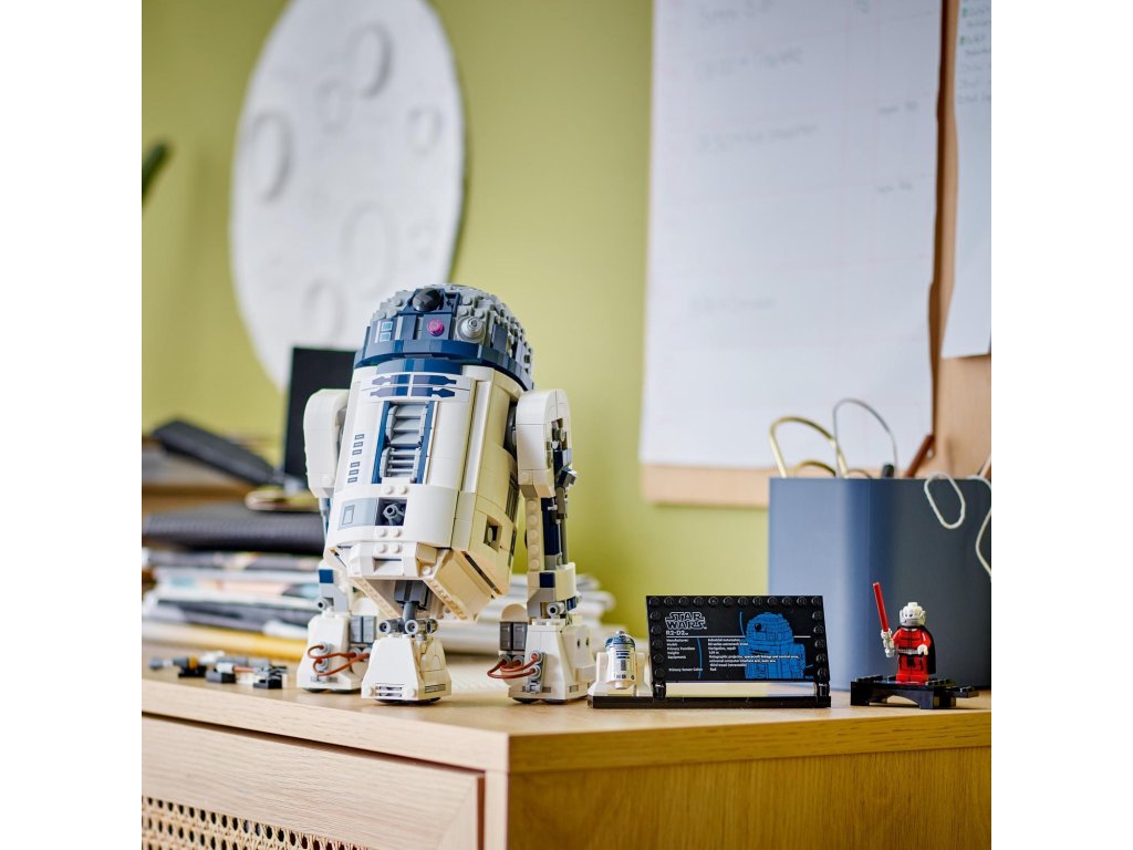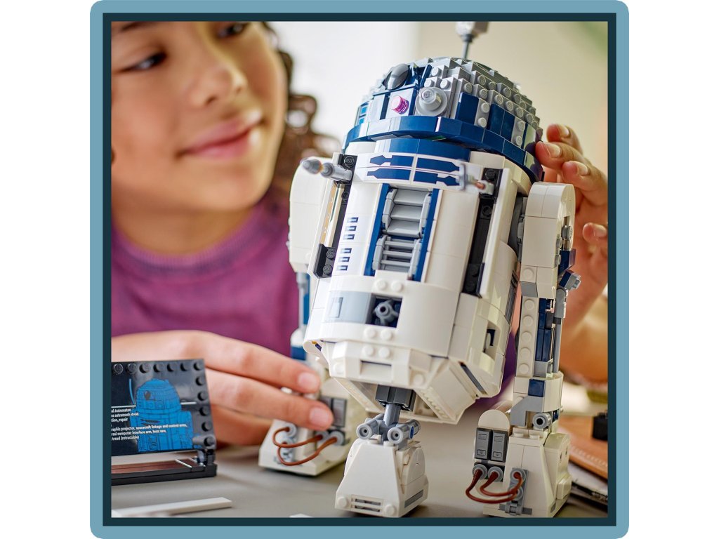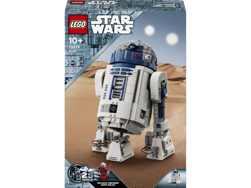 Děti si se stavebnicí R2-D2™ (75379) postaví toho nejmilovanějšího droida v celé galaxii Star Wars™ z kostek LEGO®. Tato hravá stavebnice pro děti od 10 let má spoustu autentických funkcí a malí stavitelé si s ní mohou přehrávat klasické scény i vlastní originální příběhy. Hlavu R2-D2 lze otáčet o 360 stupňů a součástí je také třetí odnímatelná noha pro pohyb, odnímatelný periskop a nástroje. Sestavte si nápaditý výstavní model – součástí stavebnice je také figurka LEGO droida R2-D2, speciální figurka Dartha Malaka se světelným mečem na podstavci na vystavení k 25. výročí LEGO Star Wars a cedulka s informacemi o R2-D2. Stavebnice představuje skvělý tip na dárek pro fanoušky Star Wars a sběratele modelů Star Wars. Součástí je intuitivní návod na stavění. V aplikaci LEGO Builder najdete digitální nástroje pro přibližování a otáčení modelů, s nimiž bude celý zážitek ještě výjimečnější.