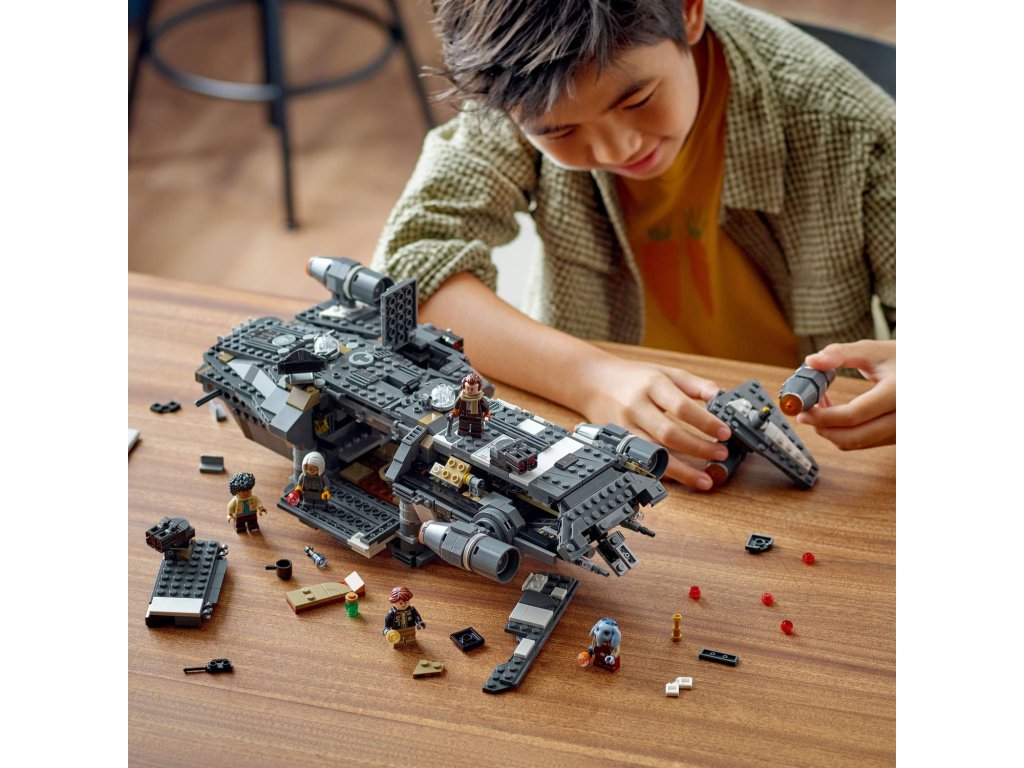 Děti se stanou hrdiny svých vlastních příběhů Star Wars: Skeleton Crew se stavebnicí Onyx Cinder (75374) z kostek LEGO®. Tato sběratelská stavebnice LEGO Star Wars™ má 2 otočné hlavně, každou s 2 vystřelovači, a drapák. Najdete v ní také 5 míst zasezení pro všechny postavy LEGO Star Wars (minifigurka LEGO Joda v kokpitu a Wim, Fern, KB a Neel na místě pro pasažéry) a místo pro 4 sestavitelné baterky a další náklad. Nechybí ani kuchyňský stolek a postel, a navíc doplňky včetně ovoce a vysílačky pro kreativní hraní.Skvělý tip na dárek LEGO pro fanoušky Star Wars a sběratele modelů Star Wars od 10 let – Součástí této stavebnice je intuitivní návod na stavění. V aplikaci LEGO Builder najdete digitální nástroje pro přibližování a otáčení modelů, s nimiž bude celý zážitek ještě lepší.