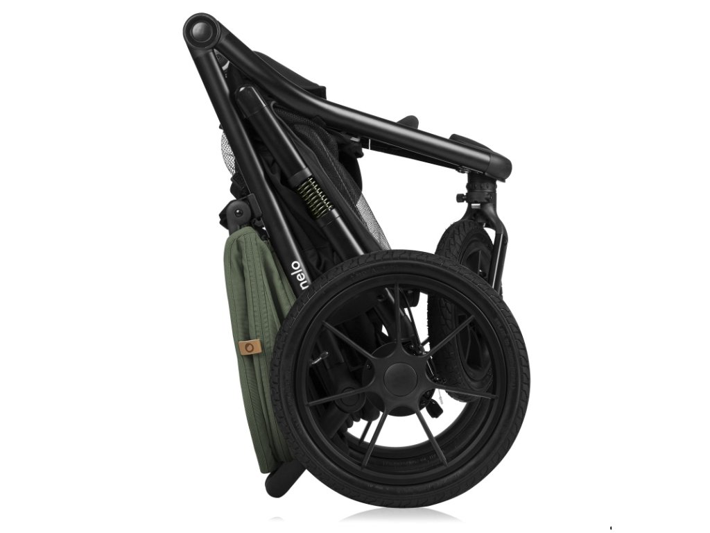 - Úplné odpružení všech kol umožňuje kočárku efektivně minimalizovat nárazy a otřesy