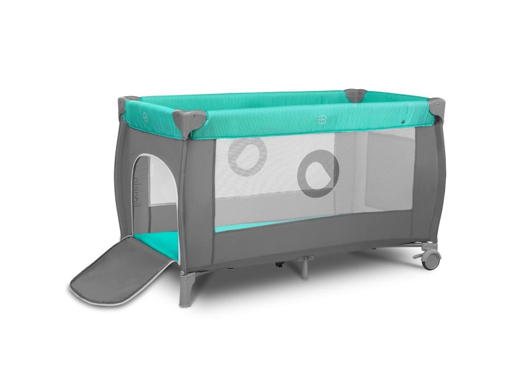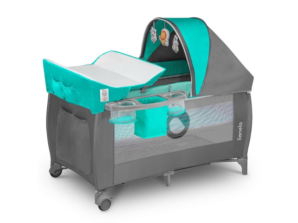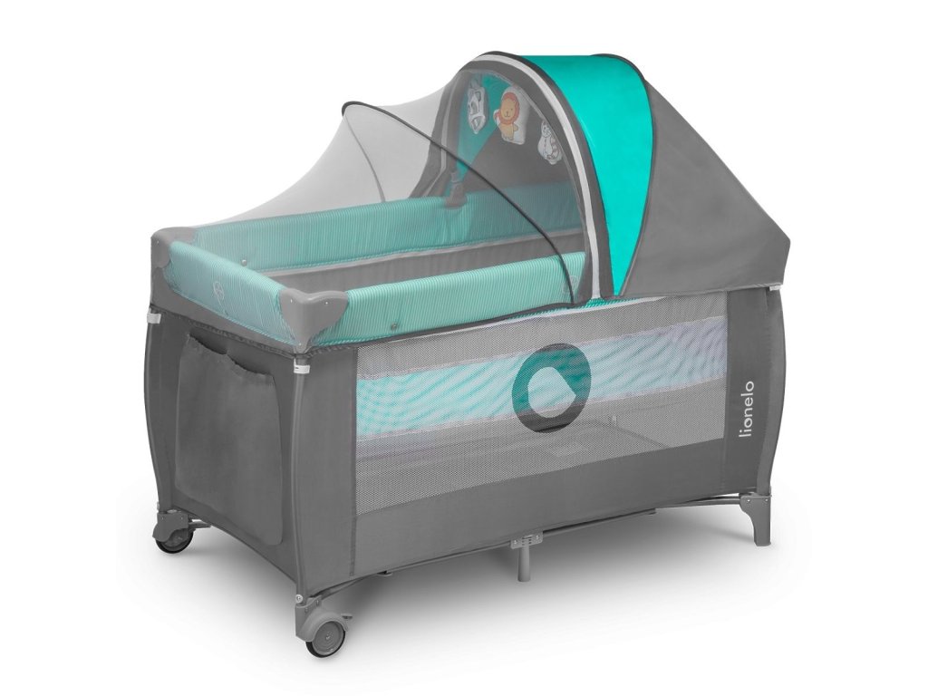 LIONELO SVEN PLUS Turquoise-grey Cestovní postýlka s výbavou