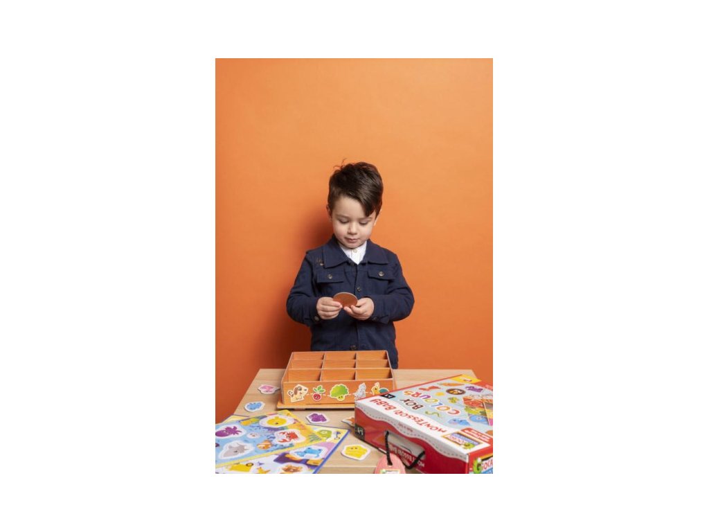 Barevná krabička, kam se vejde spousta věcí! Zařazovací hra k objevování a poznávání barev založená na metodě Montessori. Tento druh Montessori her pomáhá dětem učit se zábavným a efektivním způsobem s využitím všech jejich smyslů.