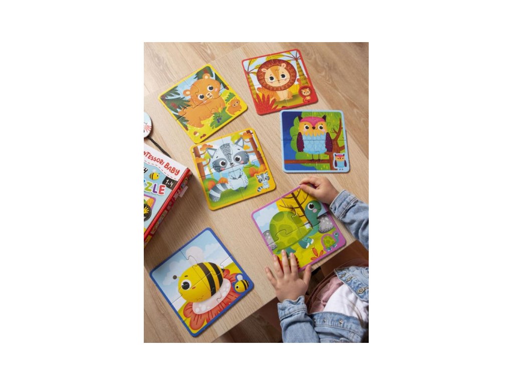 Hmatová hra speciálně vyrobená pro malé děti. Zdrsněný povrch zvířátek pomáhá malým dětem začít rozpoznávat hmatem!. Rozvíjejte pozorovací schopnosti a poskládejte obrázky z dílků správně. Sada obsahuje 24 dílků z kterých složíte 6 obrázků. Tento druh Montessori her pomáhá dětem učit se zábavným a efektivním způsobem s využitím všech jejich smyslů. Vhodné pro děti od 12 měsícůDoporučený věk: 1 - 4 roky (s dohledem a pomocí)Rozměry balení: 20 x 20 x 5 cmMontessori školaMontessori metoda vzdělávání představuje systém vzdělávání dětí, který se snaží spíše rozvíjet přirozené zájmy a aktivity než používat formální vyučovací metody. Montessori vzdělávání klade důraz na praktické učení a rozvoj dovedností v reálném světě. Klade důraz na samostatnost a na děti pohlíží jako na přirozeně dychtivé po vědomostech a schopné zahájit učení v dostatečně podpůrném a dobře připraveném učebním prostředí.Zkuste také ostatní produkty značky Liscianigioch.Doplňkové parametry