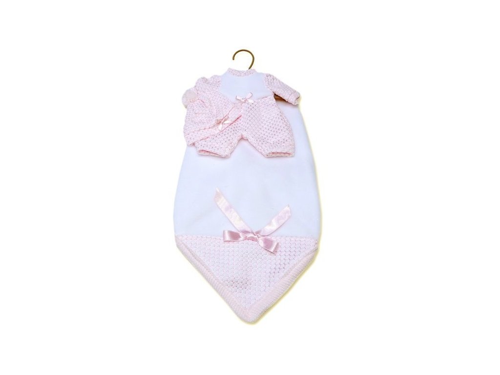2dílný obleček s ozdobnou dečkou a mašličkou pro panenku miminko NEW BORN Llorens velikosti 26 cm.