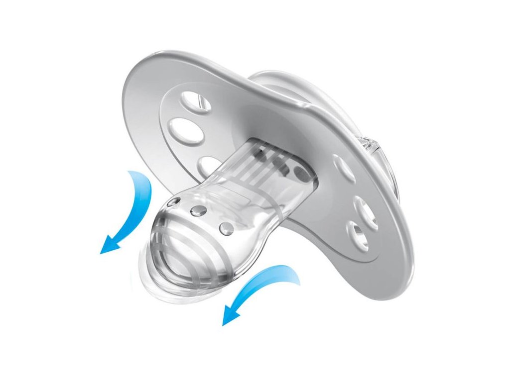 Unikátní symetrická dynamická gumička se velmi dobře odvzdušňuje a nedeformuje zubní patro dítěte: