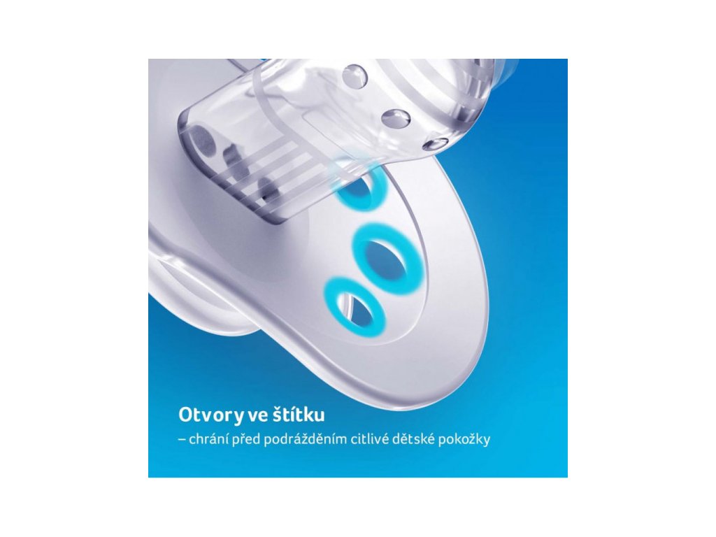 Otvory ve štítku umožňují cirkulaci vzduchu, eliminují hromadění slin za štítkem a tím předcházejí podráždění citlivé dětské pokožky.