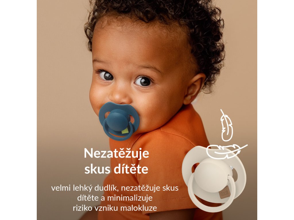 Velmi lehký dudlík, nezatěžuje skus dítěte a minimalizuje riziko vzniku malokluze.