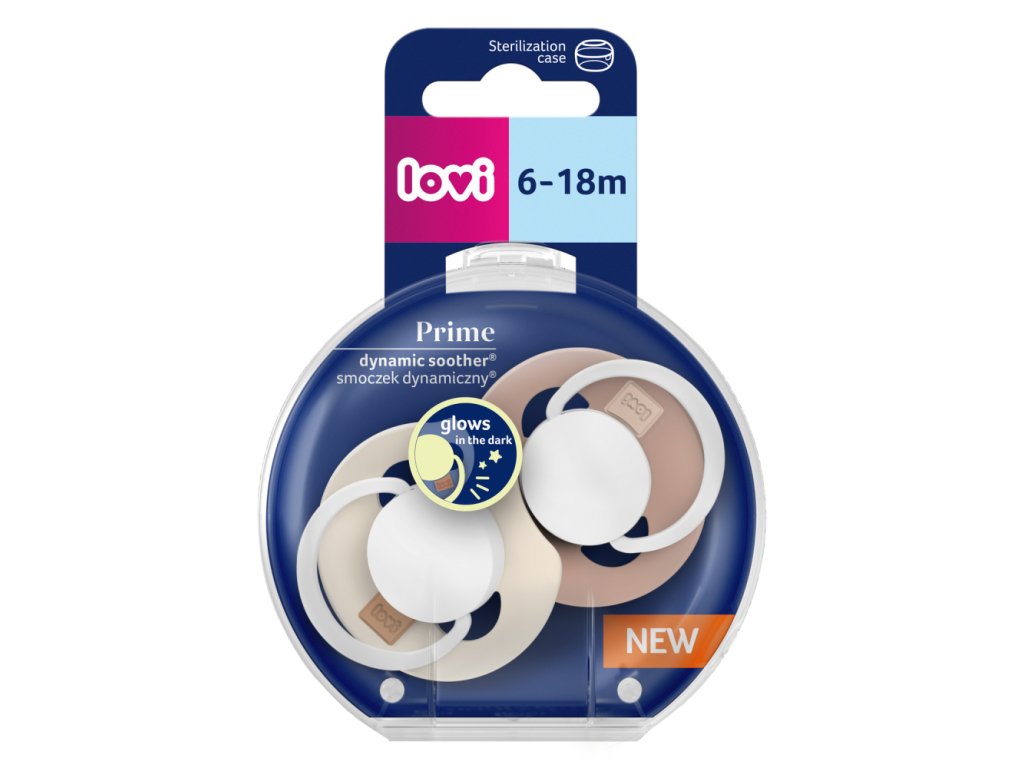 LOVI Dudlík svítící silikonový dynamický PRIME 6-18m 2ks Ivory/Blush
