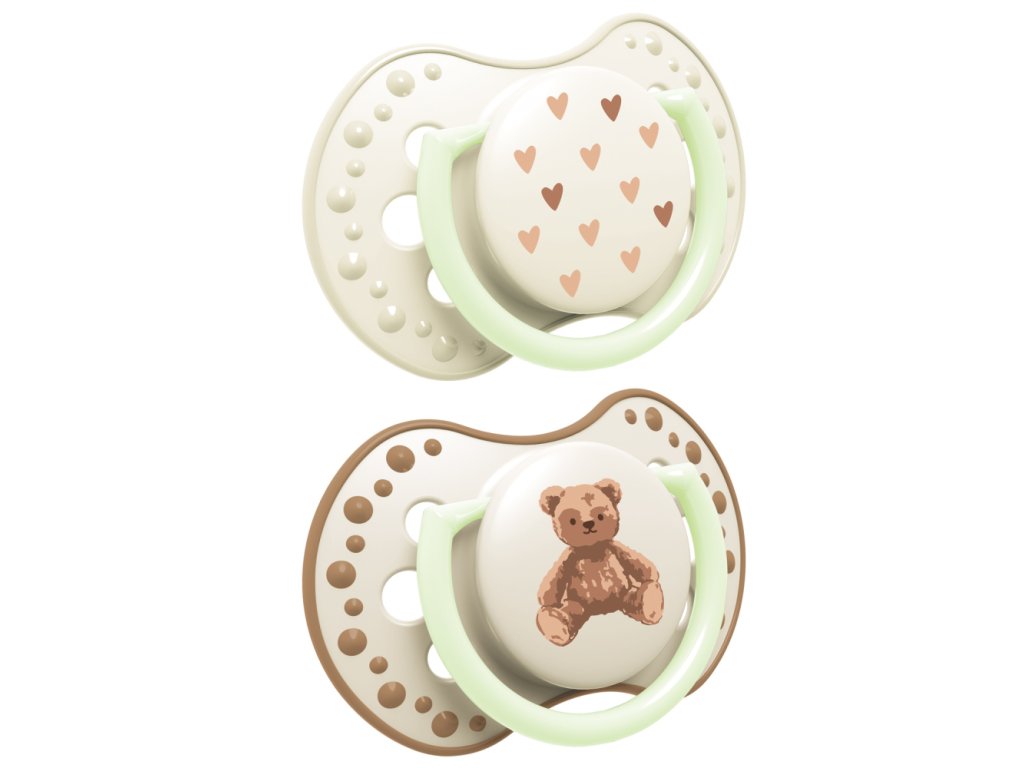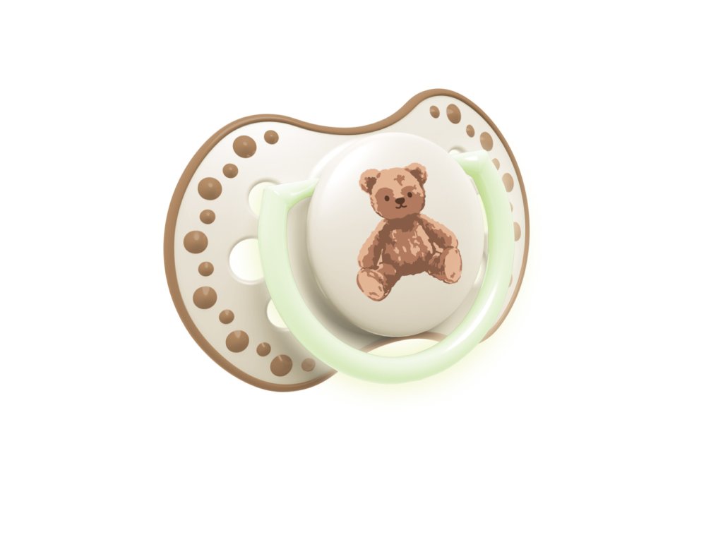 Dudlík má úchytku svítící ve tmě, což usnadňuje jeho hledání v noci.
