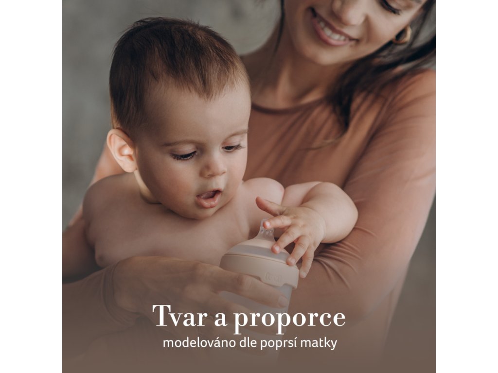 Tvar a proporce podle vzoru maminčiných prsou zajišťují, aby ústa dítěte byla umístěna ve správném úhlu