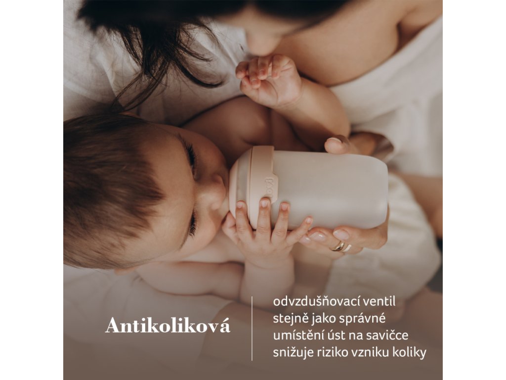 Antikoliková lahev - dobře umístěné rty umožňují volné dýchání nosem, což snižuje riziko vzniku koliky