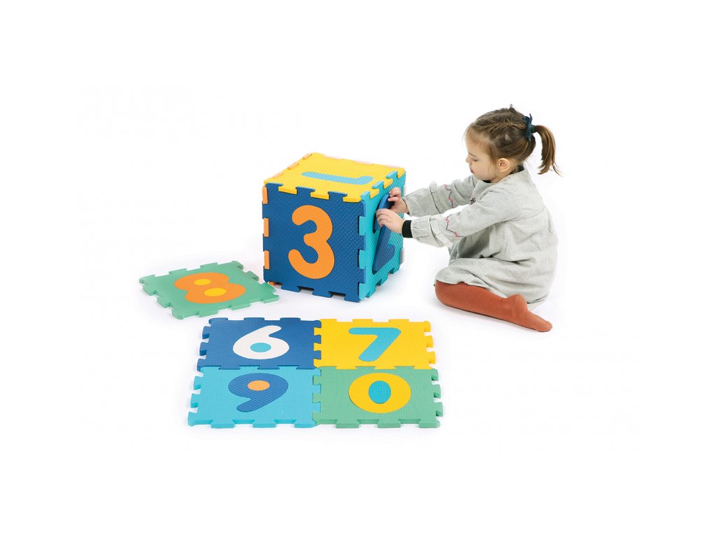 Sada devíti různobarevných pěnových puzzlí Ludi s vyjímatelnými čísly slouží ke hraní i jako hrací podložka a dekorace do dětského pokoje. Různé textury, barvy a motivy podporují rozvoj smyslů, motorických dovedností a představivosti dítěte. Ve starším věku dítěte se s jejich pomocí může učit poznávat čísla. Materiál je ohebný, odolný, tlumí nárazy a tepelně izoluje.