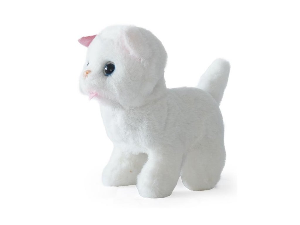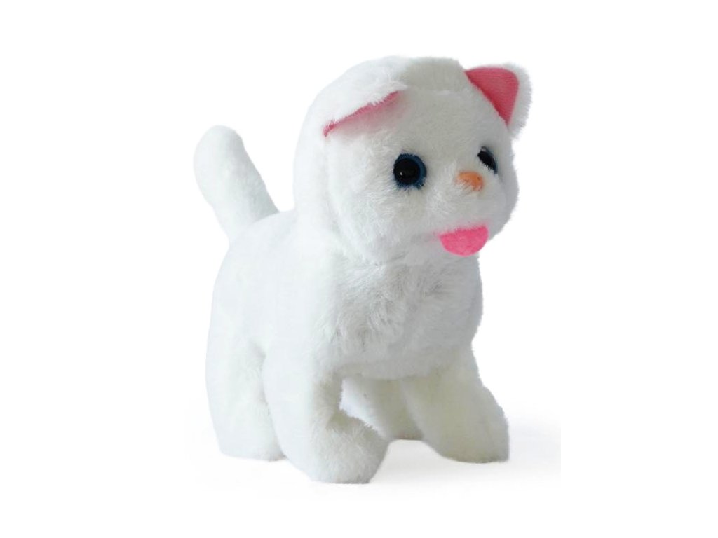 Kočička na baterie, která chodí, mňouká a hýbe ocáskem.