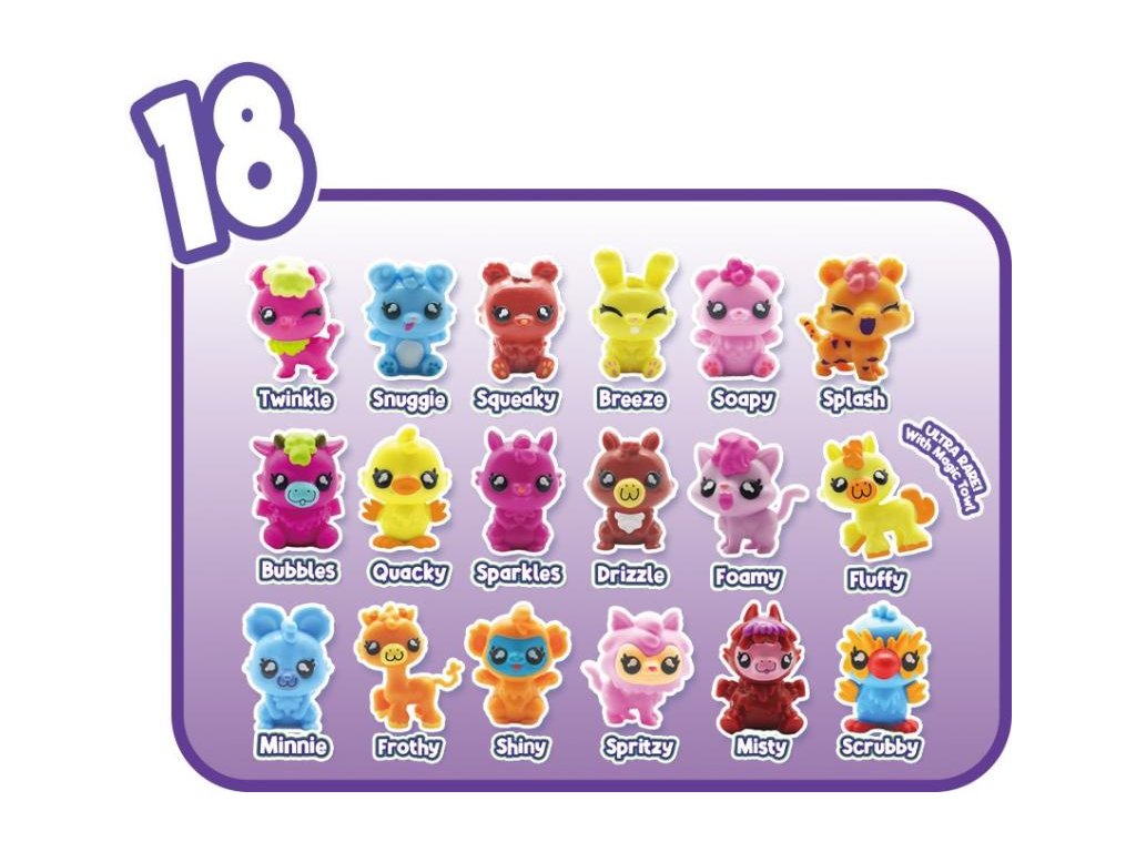 - "Prášek" a "aviváž": Samozřejmě nechybí ani mini balení "prášku" a "aviváže", abys mohl/a zvířátka pořádně vyprat ve své Washlings Kouzelné pračce.