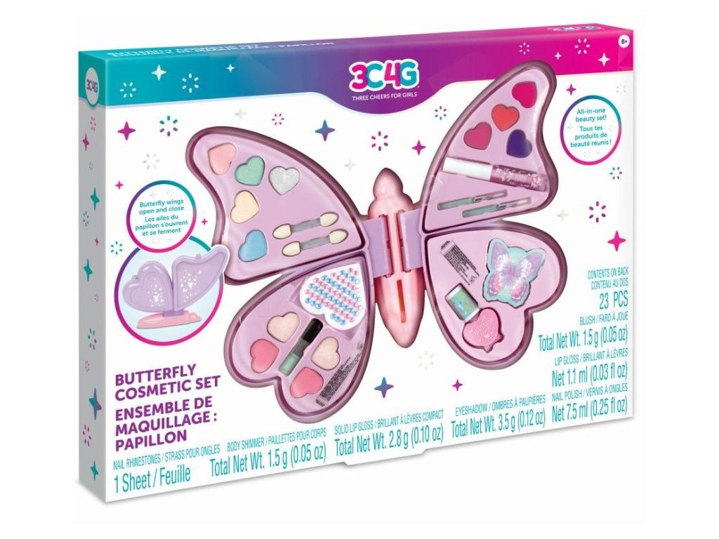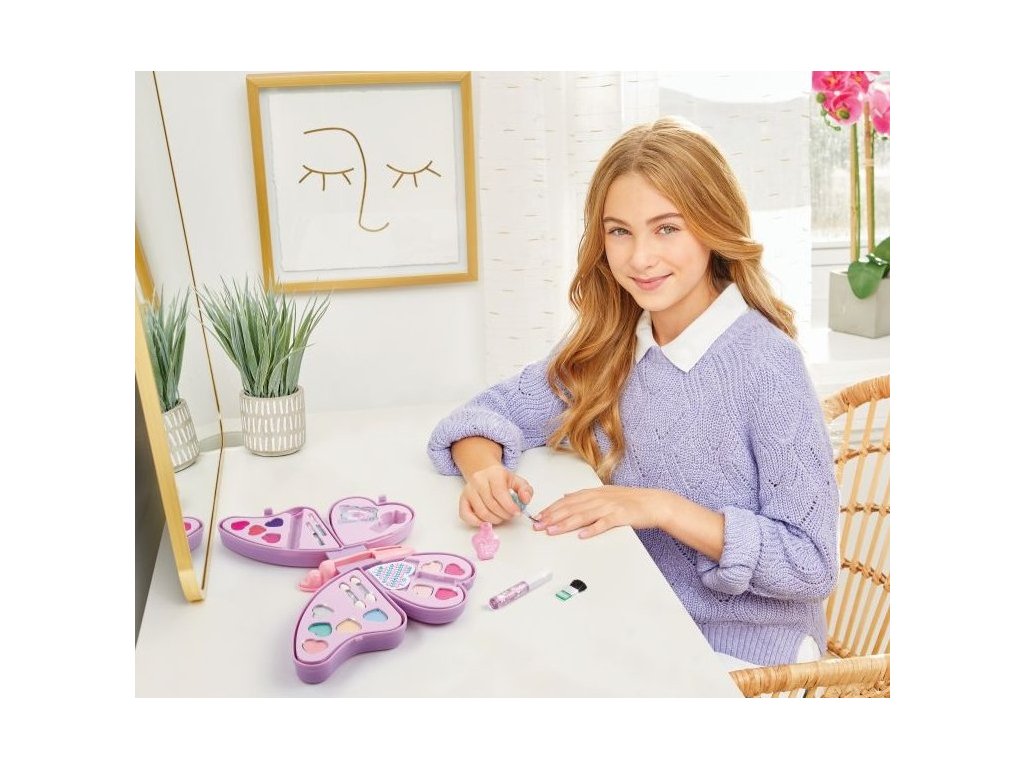Tato motýlí kosmetická sada obsahuje vše potřebné k vytvoření nádherného make-upu. Všechny součásti jsou úhledně uloženy v motýlím pouzdře.