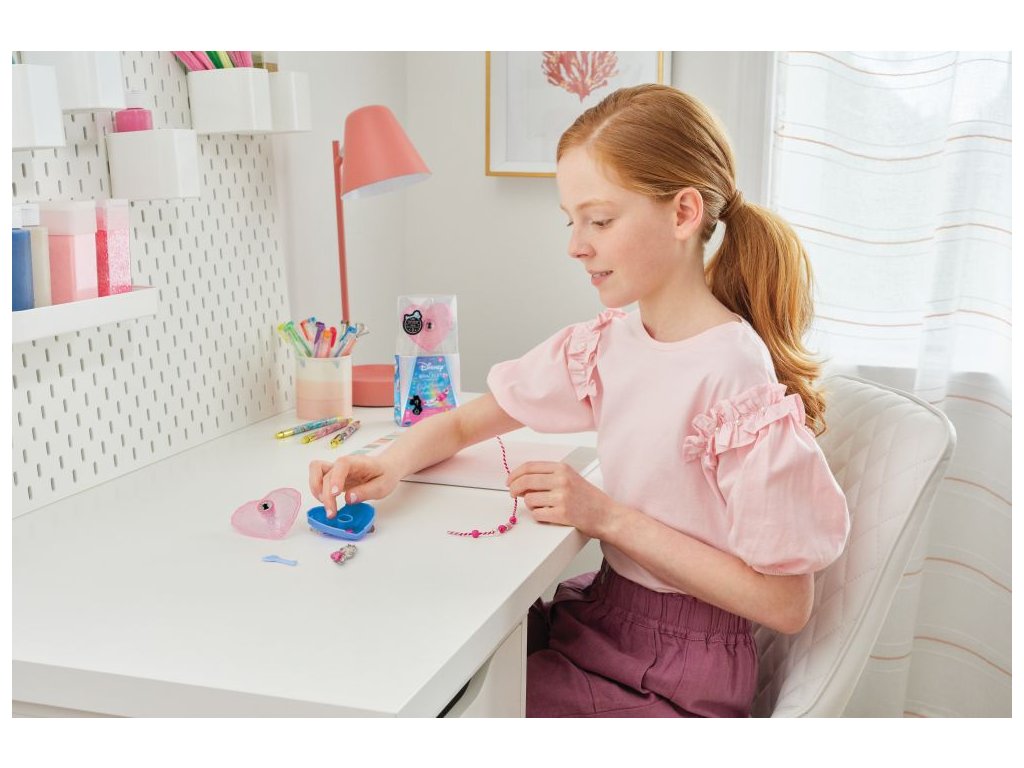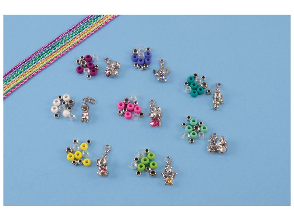 Každá sada obsahuje 1 přívěsek postavičky Disney zdobené krystalem Swarovski, 1 pletenou šňůru v jedinečné barvě postavičky Disney, 11 korálků, 1 zamykací krabičku ve tvaru srdce, 1 klíč, 1x40stránkovou brožuru Disney profilující postavy ve sbírce a návod. Každá sada tvoří jeden náramek.
