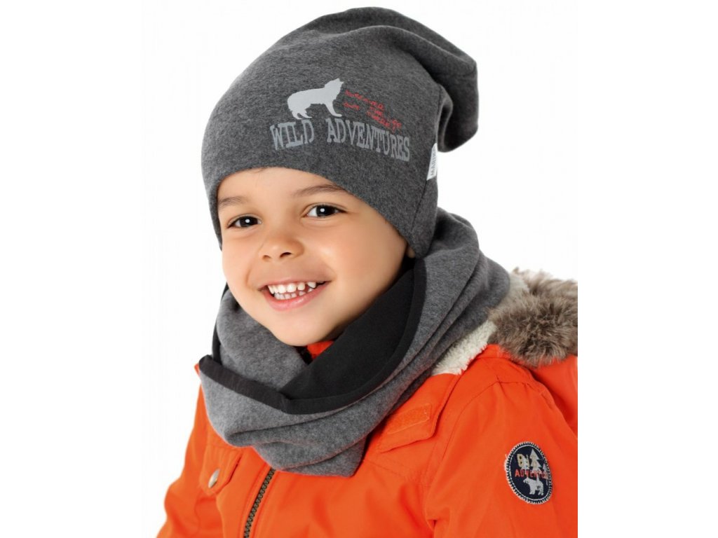 MARIKA Zimní čepice chlapecká WILK světle šedá vel. 48cm