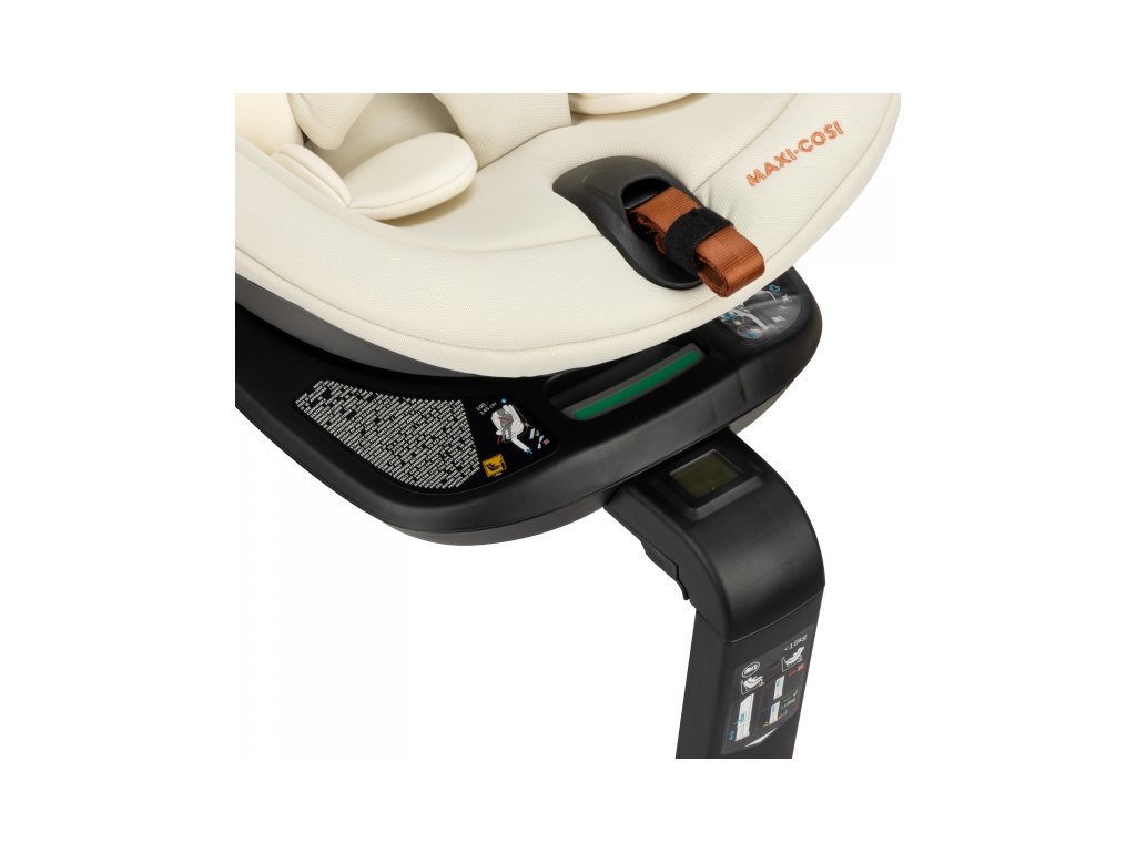 Autosedačka se do auta připevňuje s pomocí úchytů Isofix. Podpůrná noha v případě nárazu pomáhá udržet autosedačku na místě. Indikátor správné instalace s digitálním displejem ukazuje správnost připevnění úchytů Isofix a podpůrné nohy a uzamčení otočného systému.