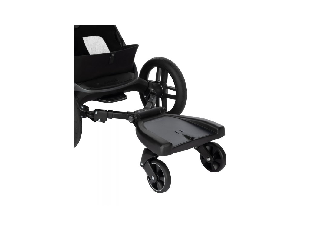 - když stupátko nepoužíváte, sklopíte jej nahoru a uchytíte přiloženým popruhem k rukojeti kočárku