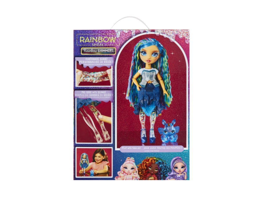 Rainbow High panenky jsou ještě kouzelnější! Společně se svými malými sestřičkami objevují nový svět, nové outfity a zcela nový způsob hraní. Každá panenka přichází s průhledným slizem a čtyřmi druhy třpytek. Třpytky přidej do slizu a uprav ho podle své fantazie. Poté sliz dej do průhledných nohou panenky a sleduj, jak se její nohy promění! Je to tak snadné! Sundej zadní část nohou, přidej sliz, zacvakni nohy zpět a můžeš si hned hrát! A to nejlepší? Můžeš to dělat znovu a znovu. Nebo můžeš třpytky a sliz kombinovat mezi různými panenkami. Obsah balení: panenka Skyler s dlouhými vlásky a 5 klouby, 1 outfit, 1 pár bot, 1 pár náušnic, průhledný sliz, 4 druhy třpytek, 1 kouzelný mazlíček.