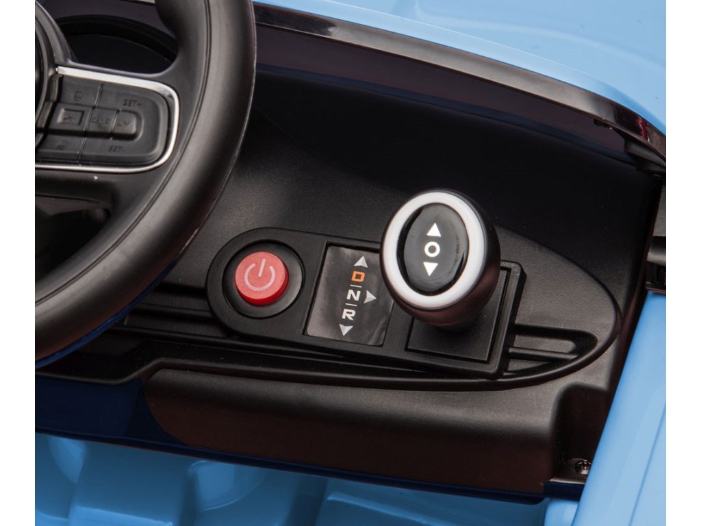 Fiat 500e je poháněn 2 elektromotory, které poskytují působivý výkon, a 3 různé úrovně rychlosti vám dávají možnost přizpůsobit rychlost schopnostem vašeho dítěte. Vzbuzuje úctu svou elegantní siluetou, která je ikonou městského stylu. Pohodlné velké tvarované sedadlo s bezpečnostním pásem je pro dítě výhodou a komfortem. Ovládá se z dálkového ovladače , který má funkci zablokování rychlosti - P, označení jedné ze 3 úrovní rychlosti - S, funkce otáčení a jízdy vpřed a vzad, M - tlačítko pro spárování ovladače s vozidlem. Sešlápnutím plynového pedálu se tento nádherný Fiat 500e rozjede a zároveň se rozsvítí přední LED světlomety. Velká široká plastová kola a sportovní ráfky, po jejichž sejmutí vidíme imitaci ventilovaných bubnových brzd, zajistí mobilitu při výletech i těm nejmenším uživatelům. Ocelové nápravy kol mezitím zaručují stabilitu a odolnost vozidla. Atrakcím není konec: hudební funkce na kokpitu a USB portu, Bluetooth, přehrávání hudby, hlasitost +/- , 4 písničky po stisknutí tlačítka na pravé straně kokpitu, další tlačítko spouští dětské pohádky, to vše dělá zábavu ještě zajímavější!