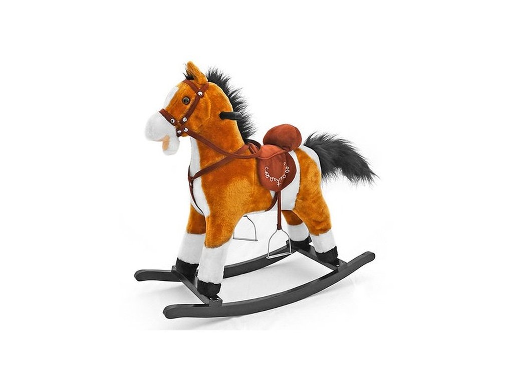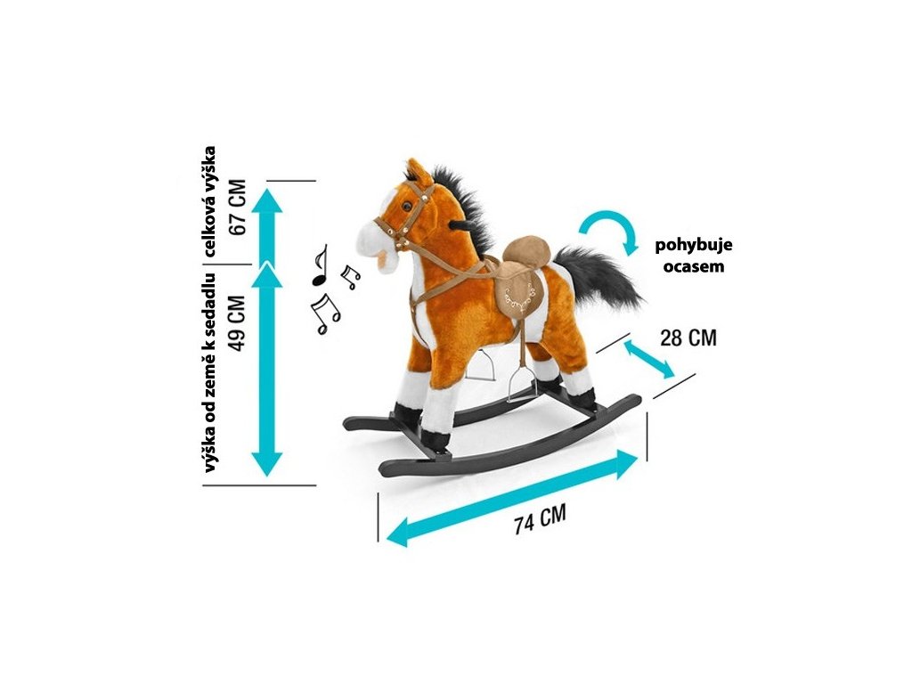 Koník je balen samostatně v krabici, která může být použitá i jako dárkové balení. Je vyroben z měkkého plyšového materiálu, díky čemuž si Vaše dítě může dlouho užívat skvělou zábavu. Hračka má sedlo, třmeny a dřevěné rukojeti. Koníka lze z houpacího rámu sundat a použít jako samostatnou plyšovou hračku.