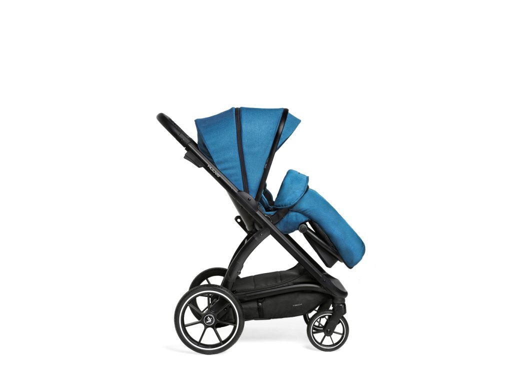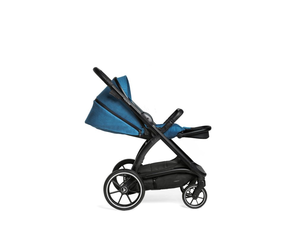 Trick je lehký a extrémně obratný kočárek 2 v 1. Nejvyšší jízdní komfort zajišťuje dobře profilované, prostorné sedátko kočárku, velmi dobré tlumení nárazů a nastavitelná opěrka nohou.